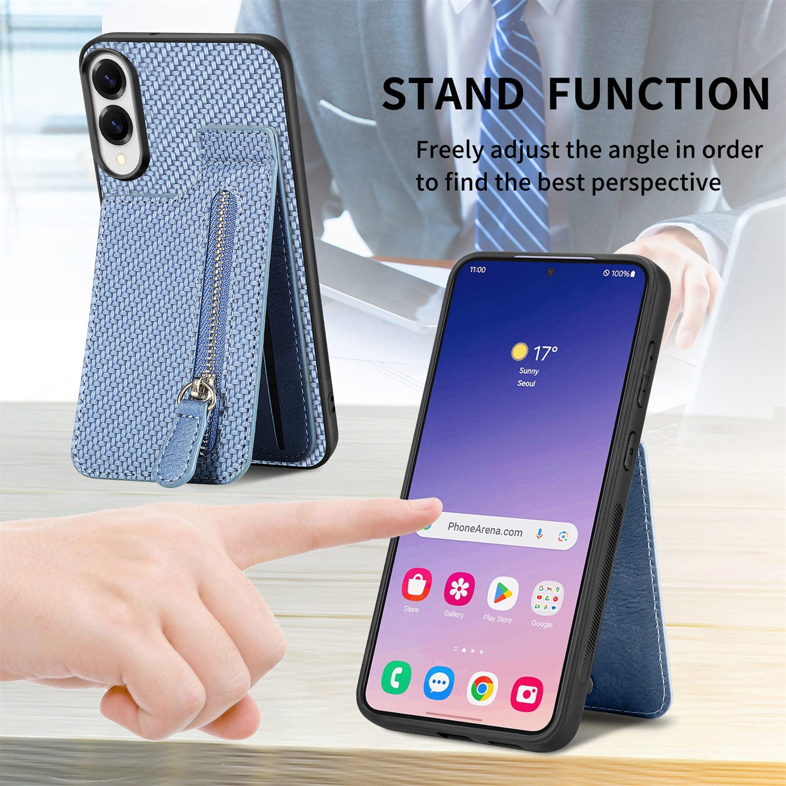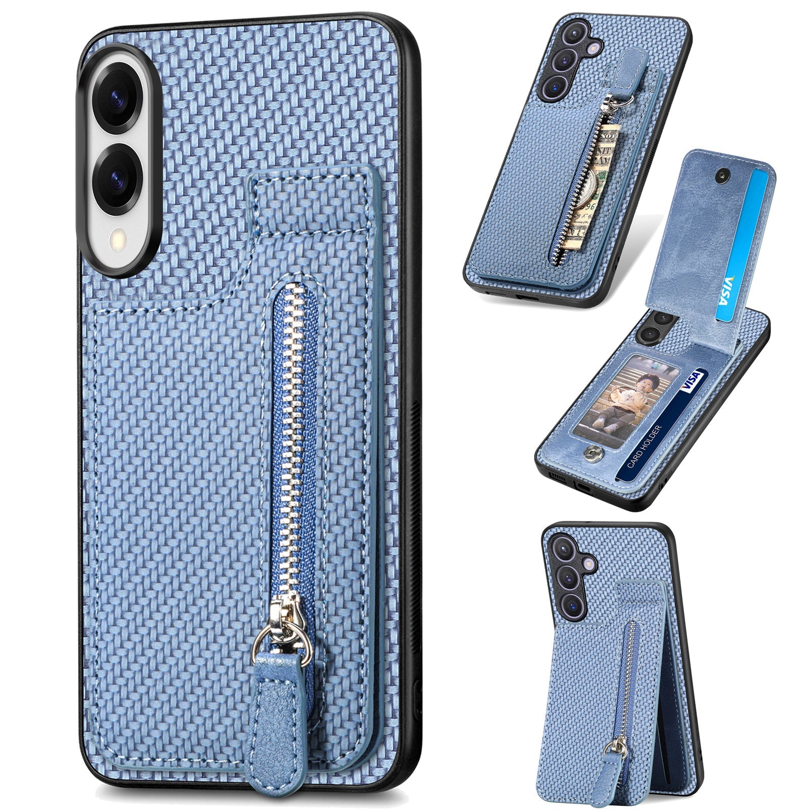For Samsung Galaxy S25 Edge Case Leather Phone Back Cover with Zipper Card Holder Kickstand - Blue