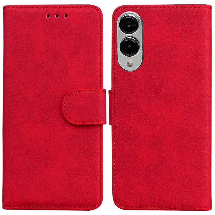 For Samsung Galaxy S25 Edge Case Solid Color Leather Wallet Phone Cover - Red