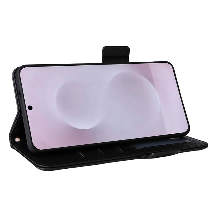 For Samsung Galaxy S25 Edge Case Wallet Flip Litchi Texture PU Leather Phone Cover - Black