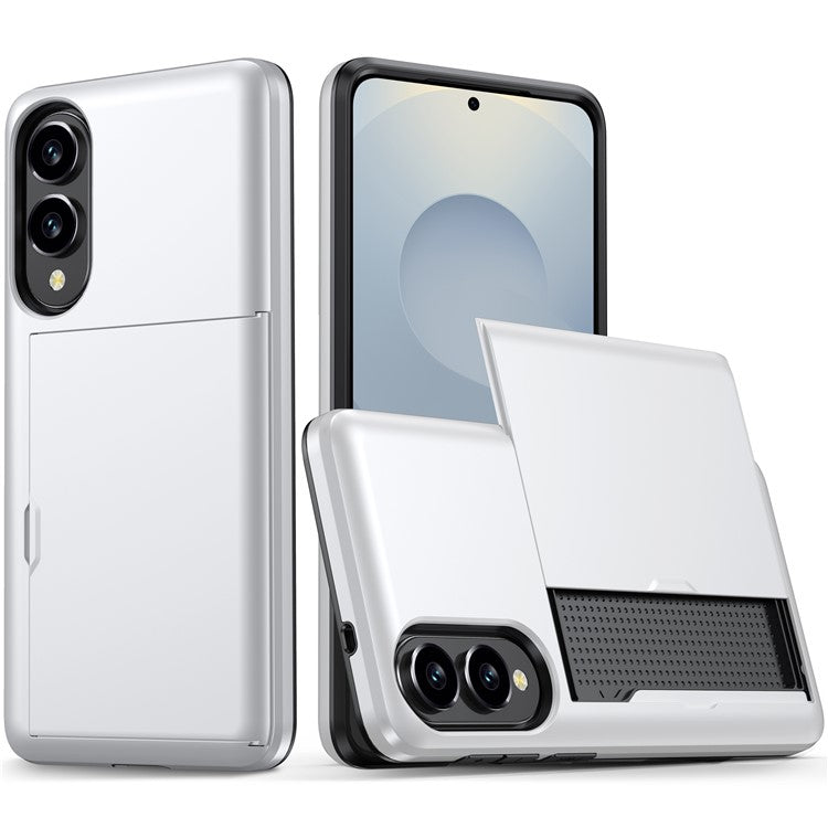 For Samsung Galaxy S25 Edge Case with Card Holder TPU + PC Phone Back Cover - Silver