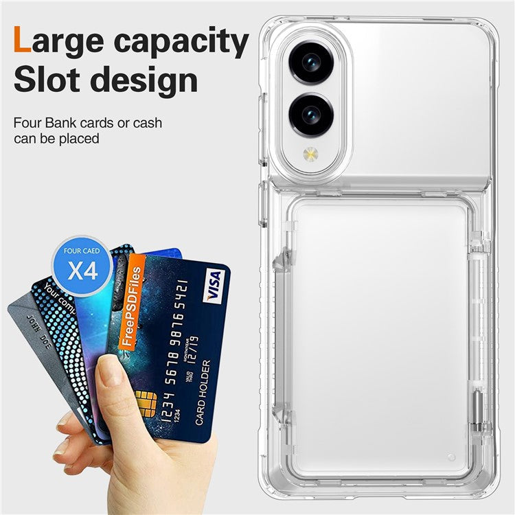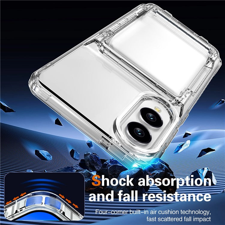 For Samsung Galaxy S25 Edge Clear Case PC + TPU Phone Cover Card Holder Kickstand - Transparent