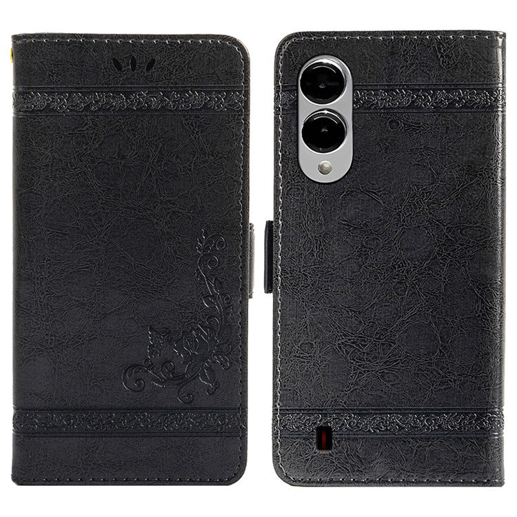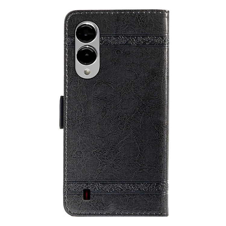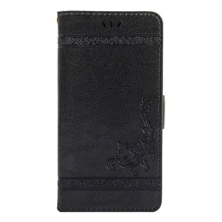 For Samsung Galaxy S25 Edge Leather Case Flower Imprint Wallet Phone Cover with Side Buckle - Black