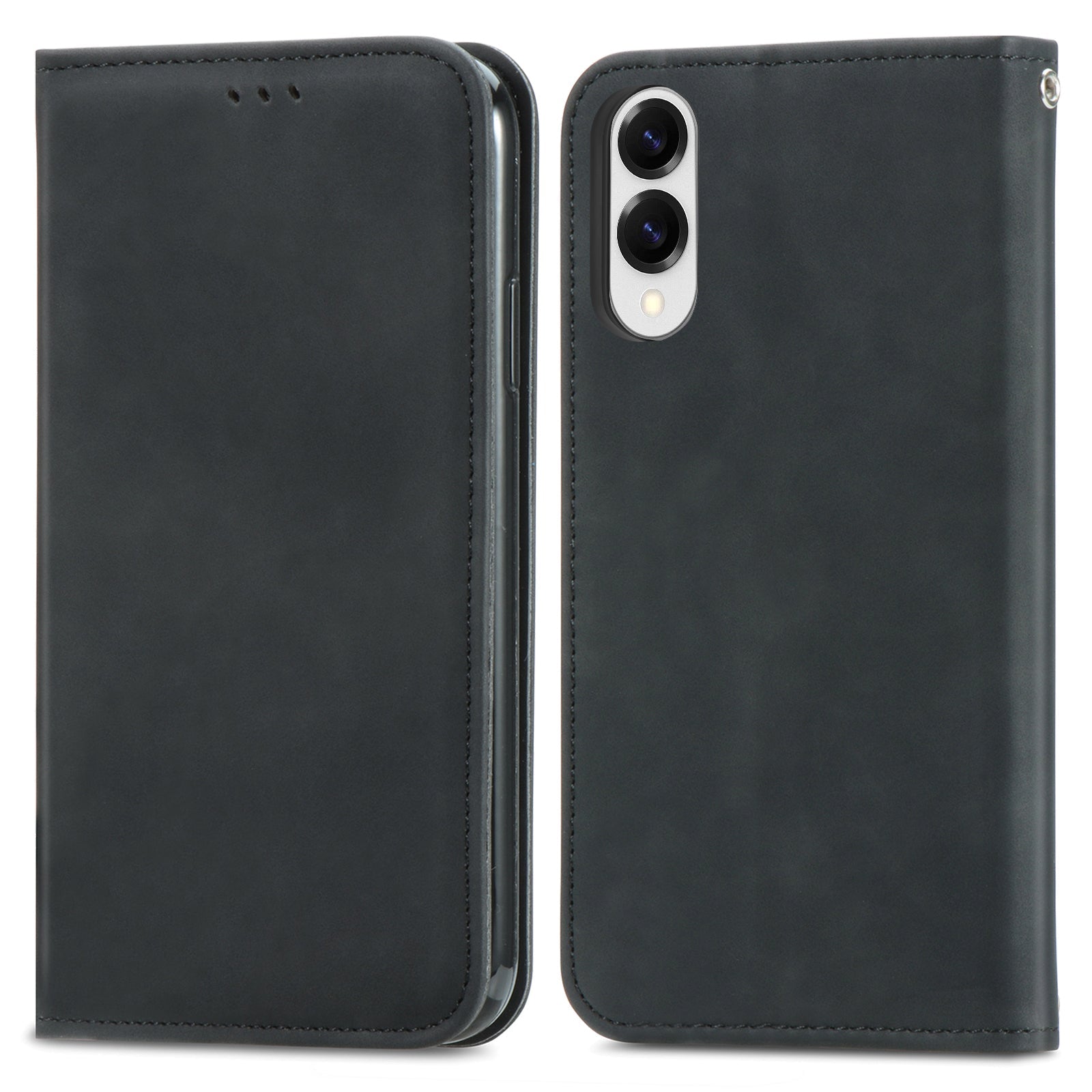 For Samsung Galaxy S25 Edge Leather Case with Card Holder Magnetic Absorption Phone Cover - Black