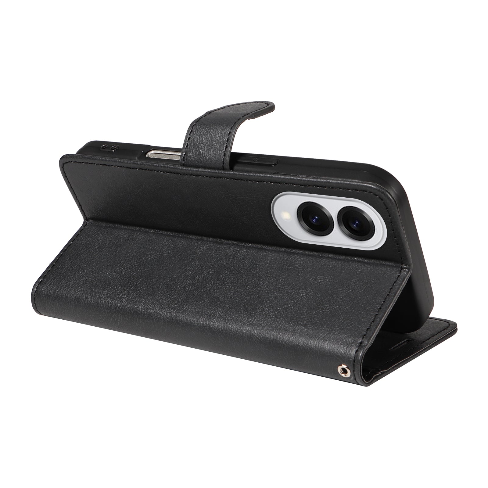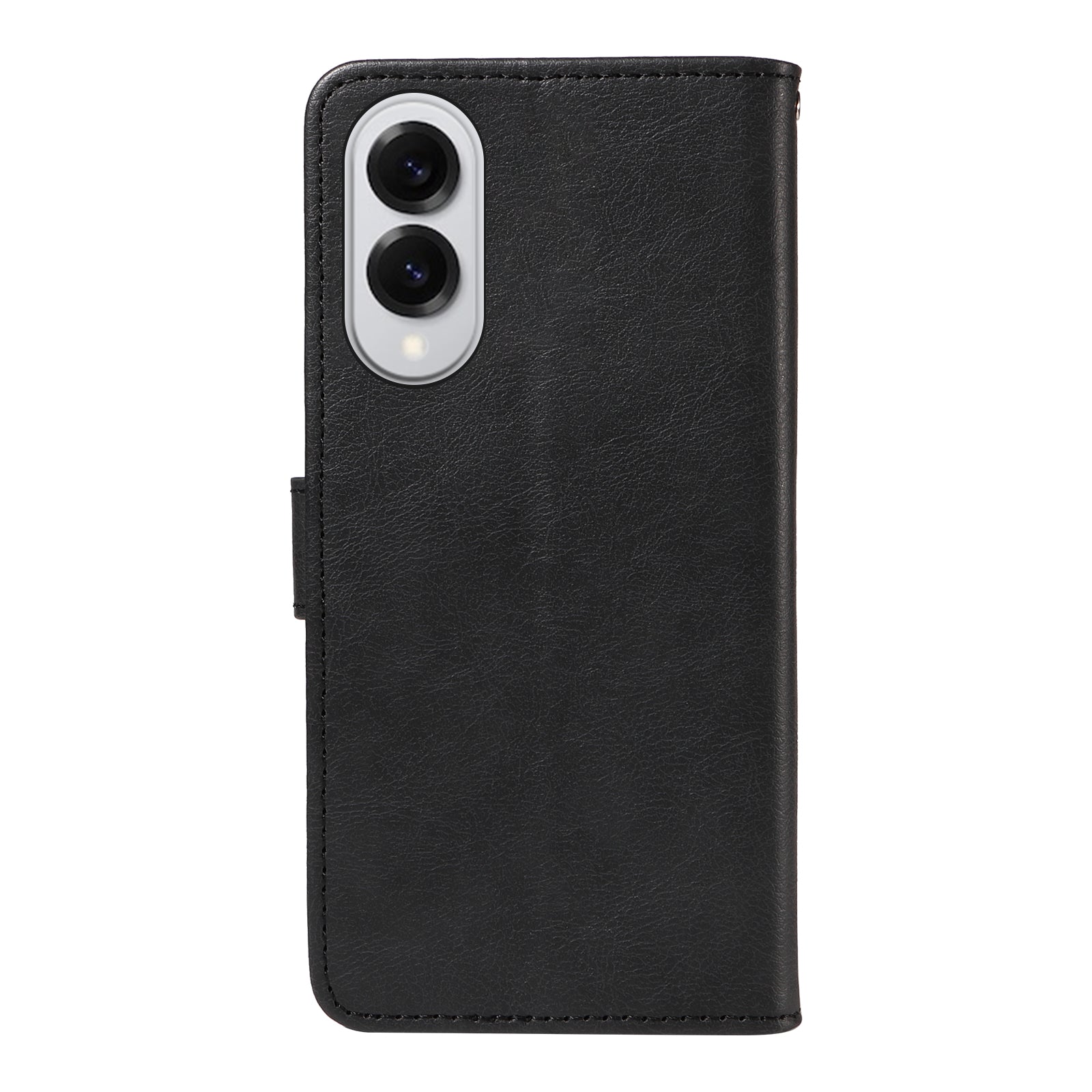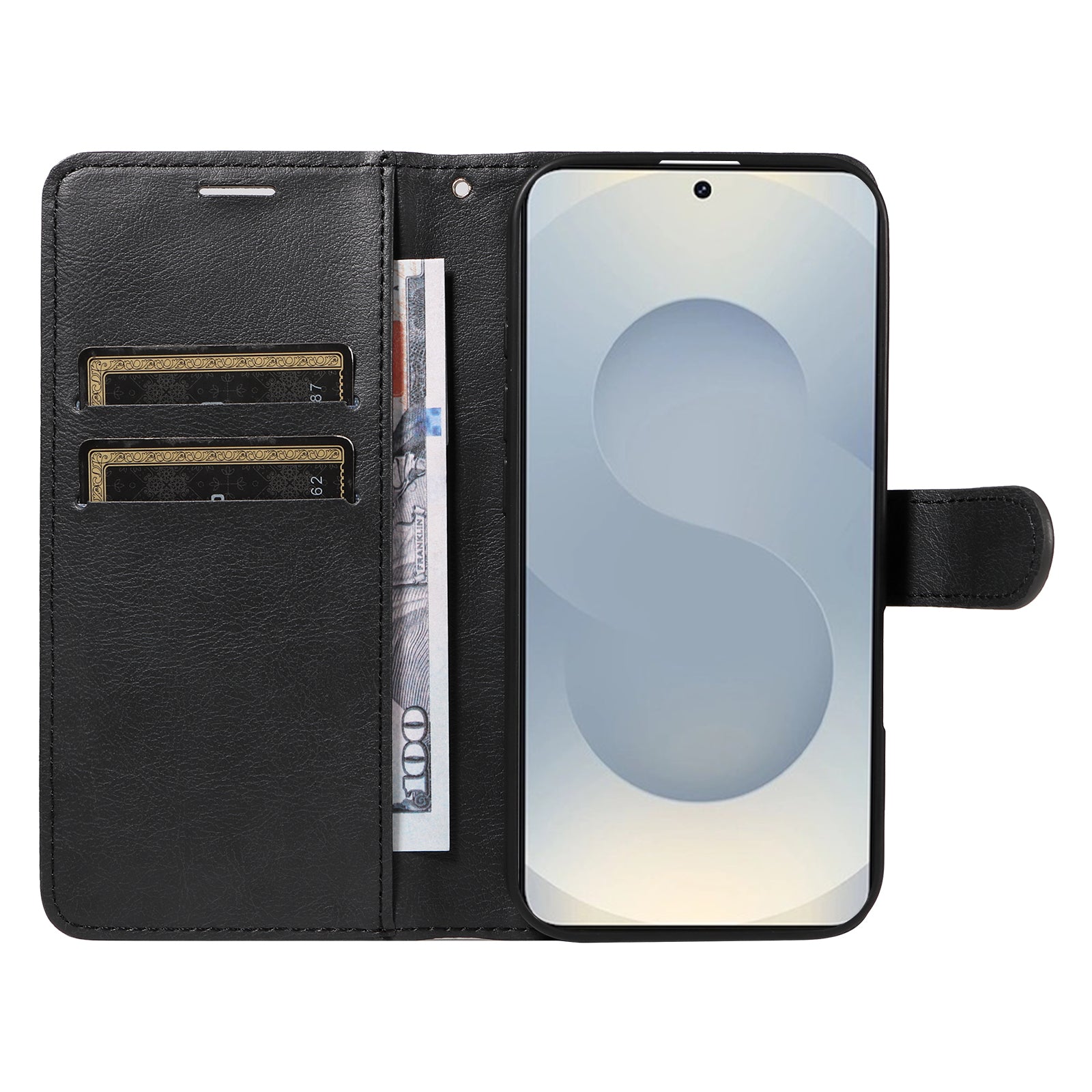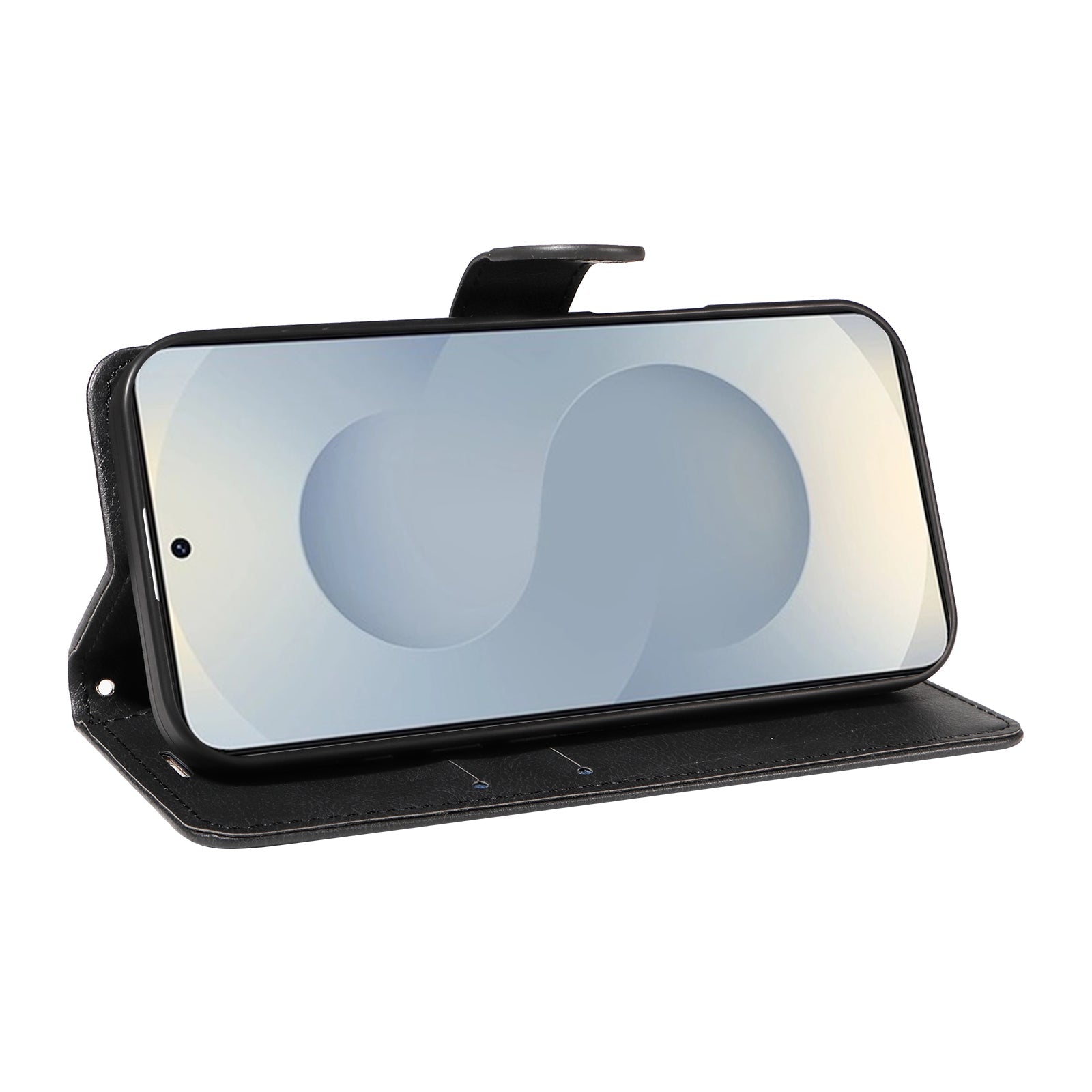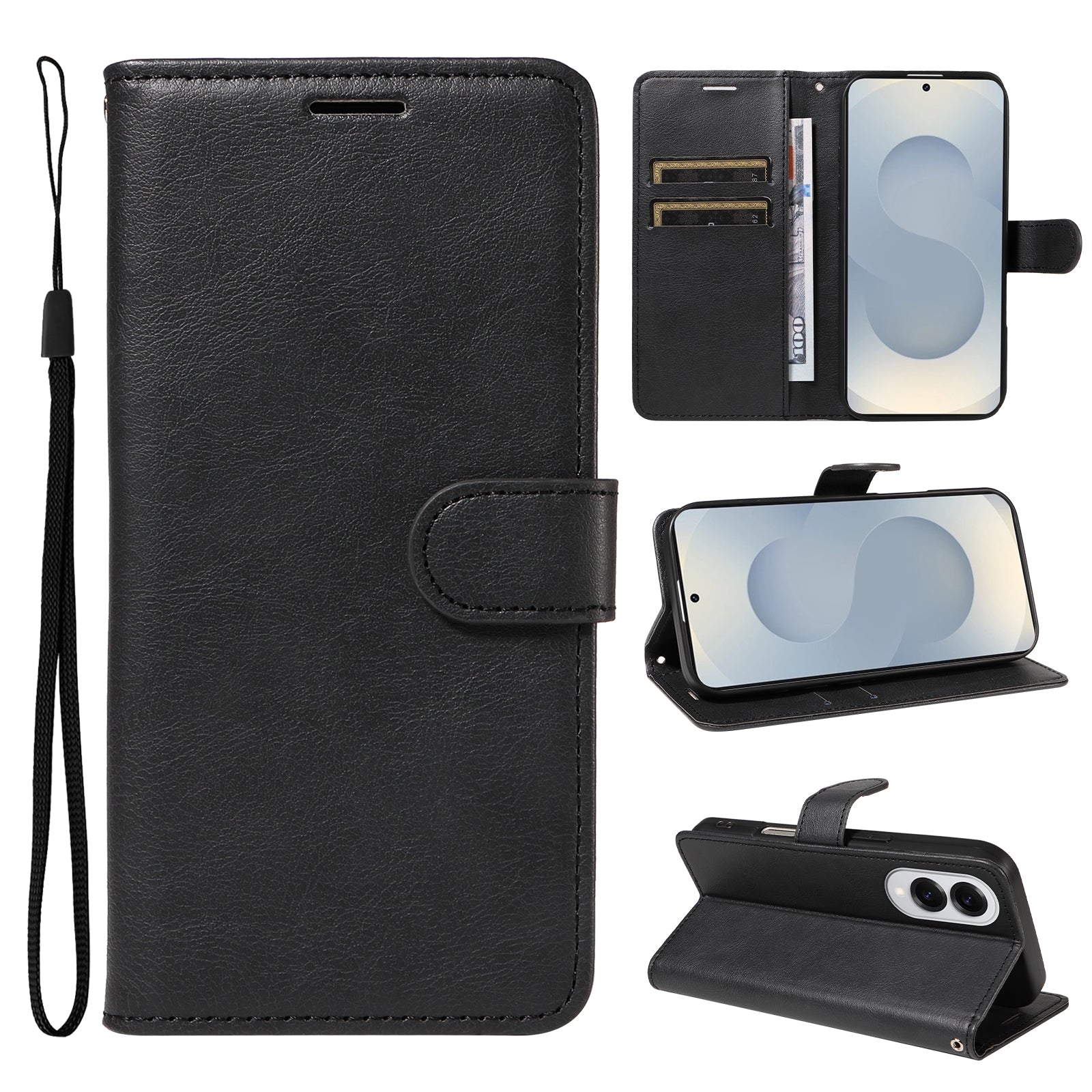 For Samsung Galaxy S25 Edge Leather Wallet Case with Strap Solid Color Phone Stand Cover - Black