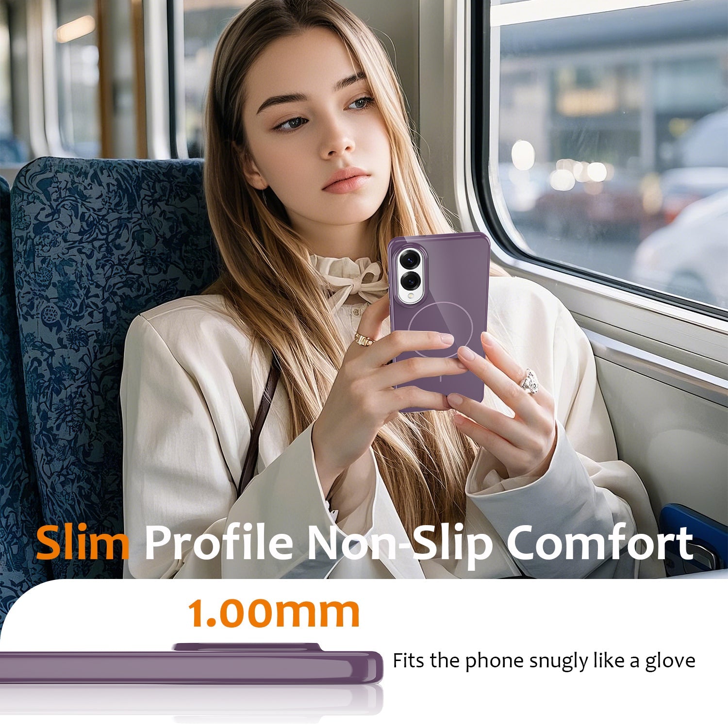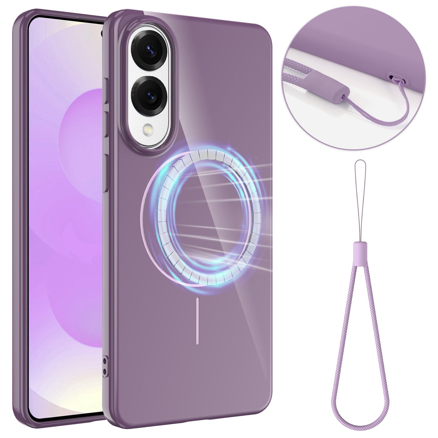 For Samsung Galaxy S25 Edge Magnetic Case Compatible with MagSafe TPU Phone Back Cover with Lanyard - Purple