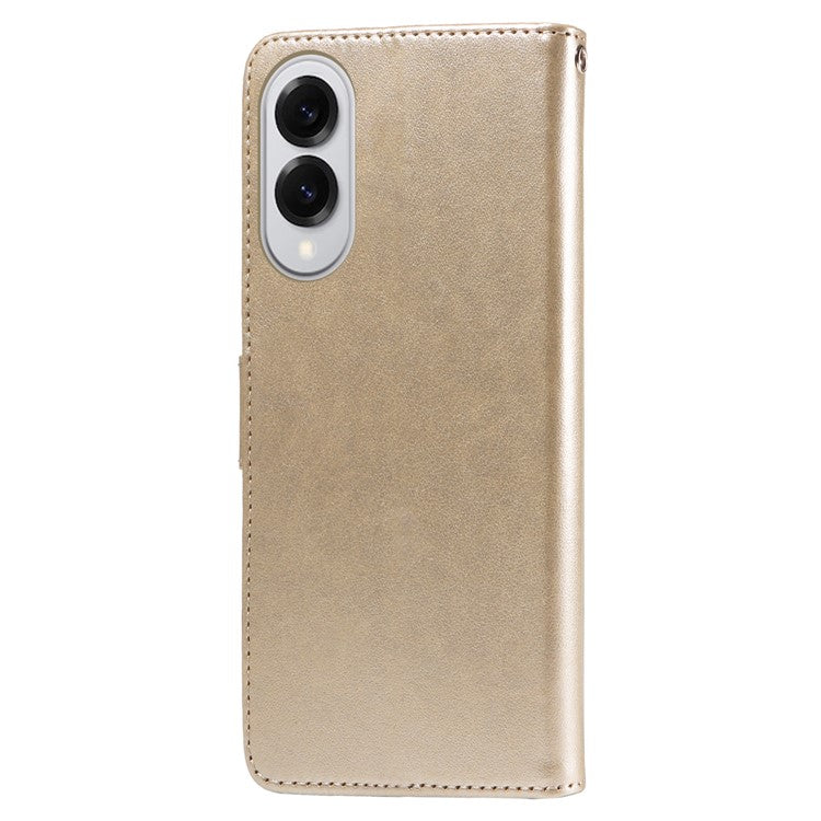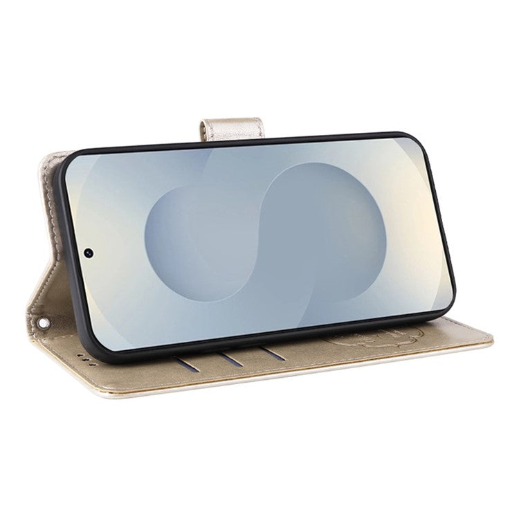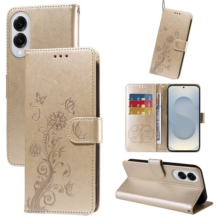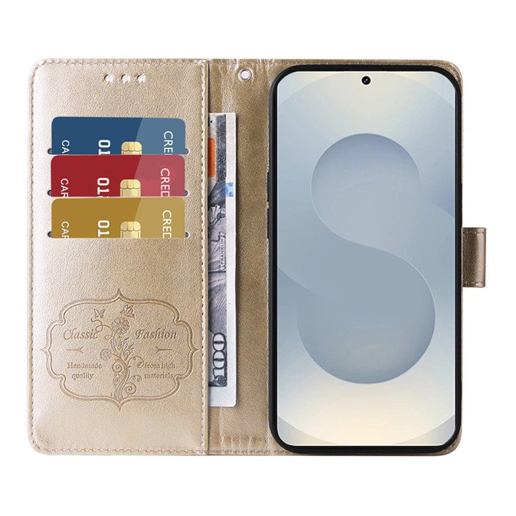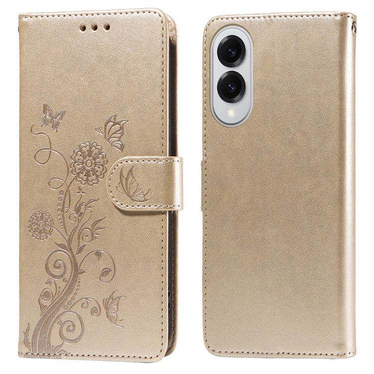 For Samsung Galaxy S25 Edge Phone Case Wallet Stand Butterfly Floral Imprint Leather Cover - Gold