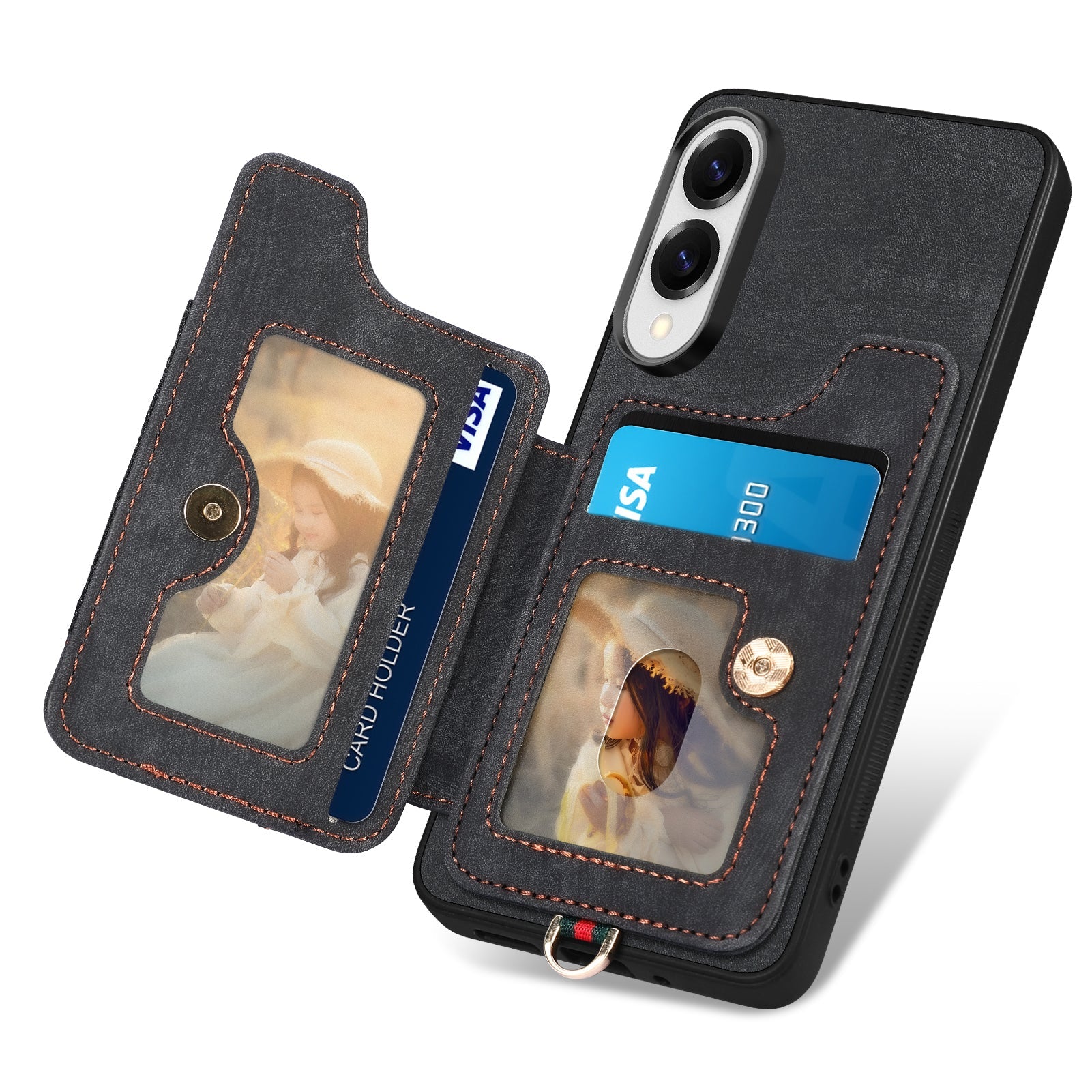 For Samsung Galaxy S25 Edge Retro PU Leather Back Cover with RFID Blocking Card Holder - Black