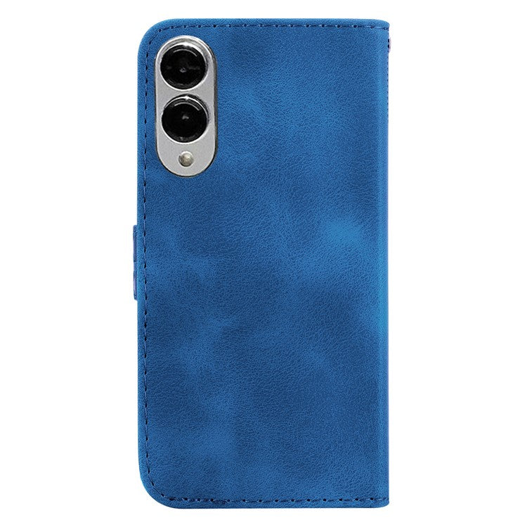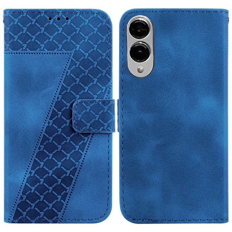 For Samsung Galaxy S25 Edge Stand Case 7-Shaped Pattern Imprint Leather Phone Cover - Dark Blue