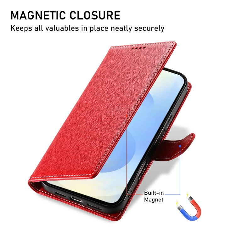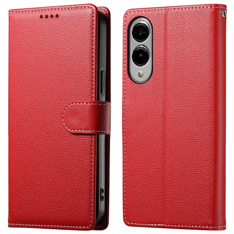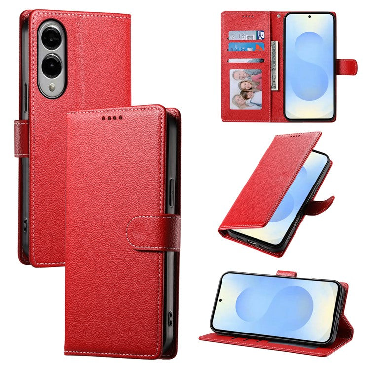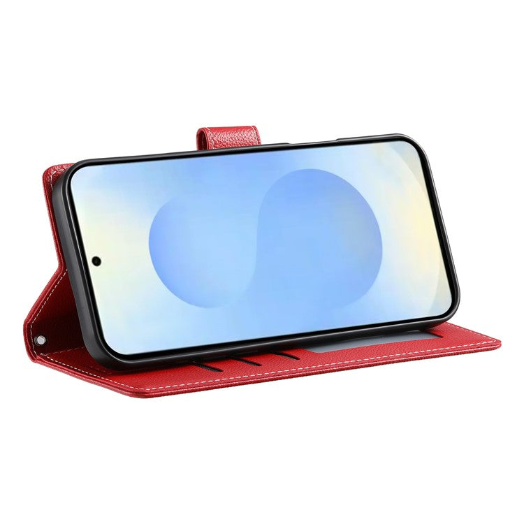 For Samsung Galaxy S25 Edge Stand Case Litchi Texture Leather Wallet Phone Cover Magnetic Snap - Red