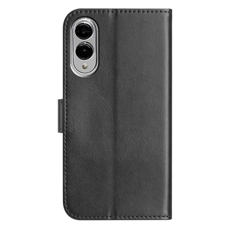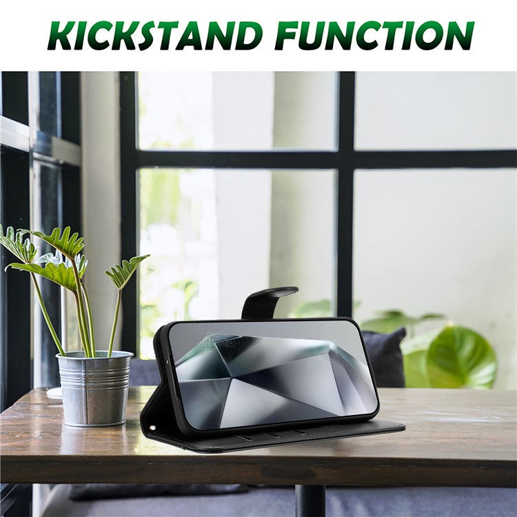 For Samsung Galaxy S25 Edge Stand Case with Strap PU Leather Wallet Phone Cover S Shape Stitching Design - Black