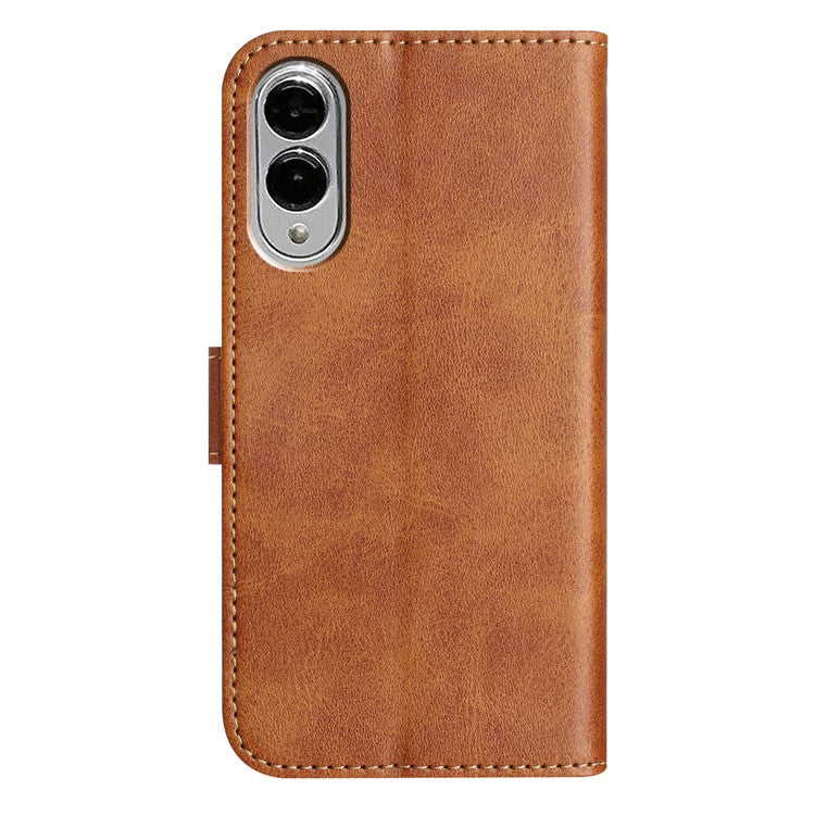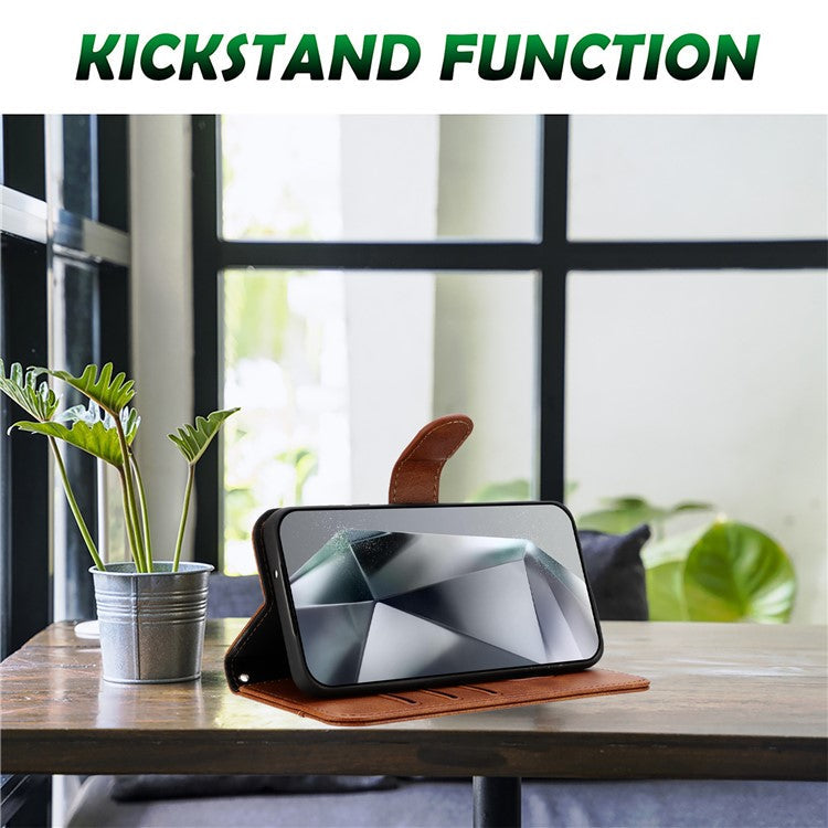 For Samsung Galaxy S25 Edge Stand Case with Strap PU Leather Wallet Phone Cover S Shape Stitching Design - Brown