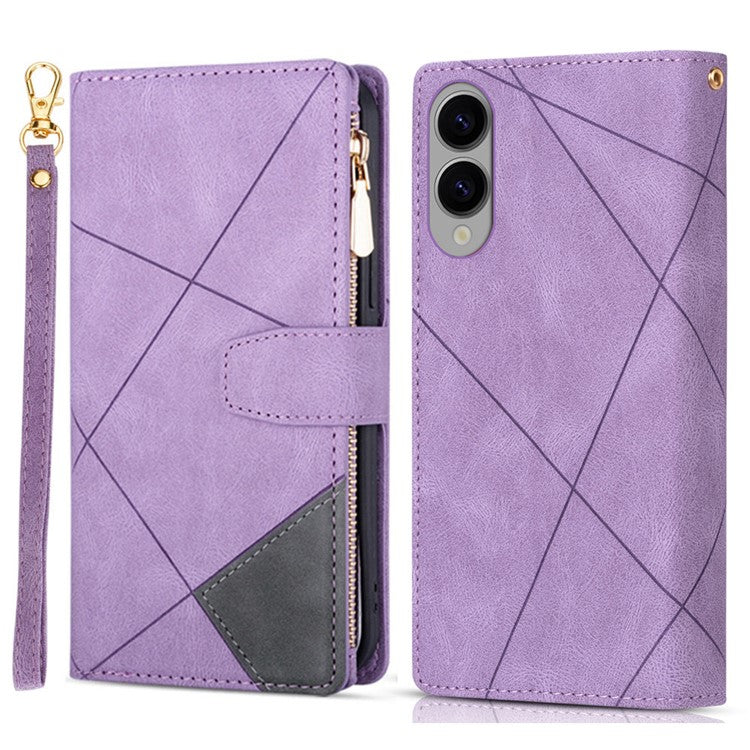 For Samsung Galaxy S25 Edge Wallet Case Color Splicing Leather Phone Cover with Stand - Purple