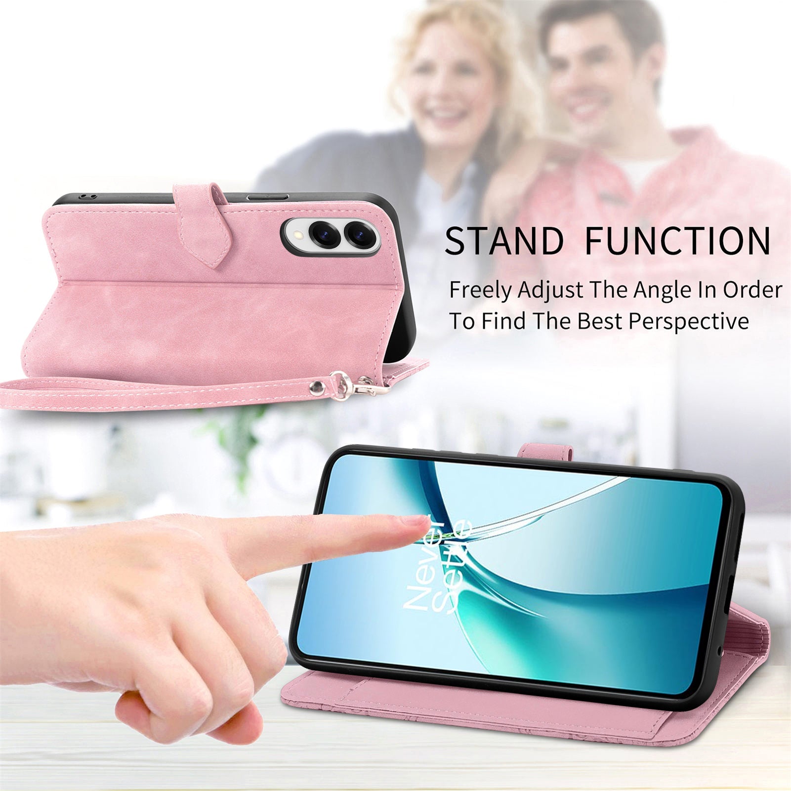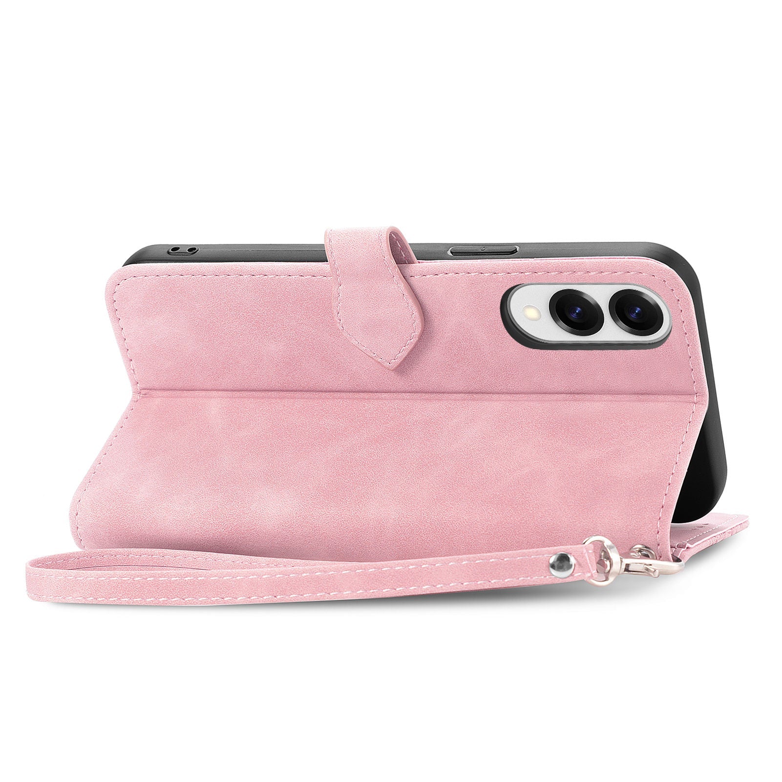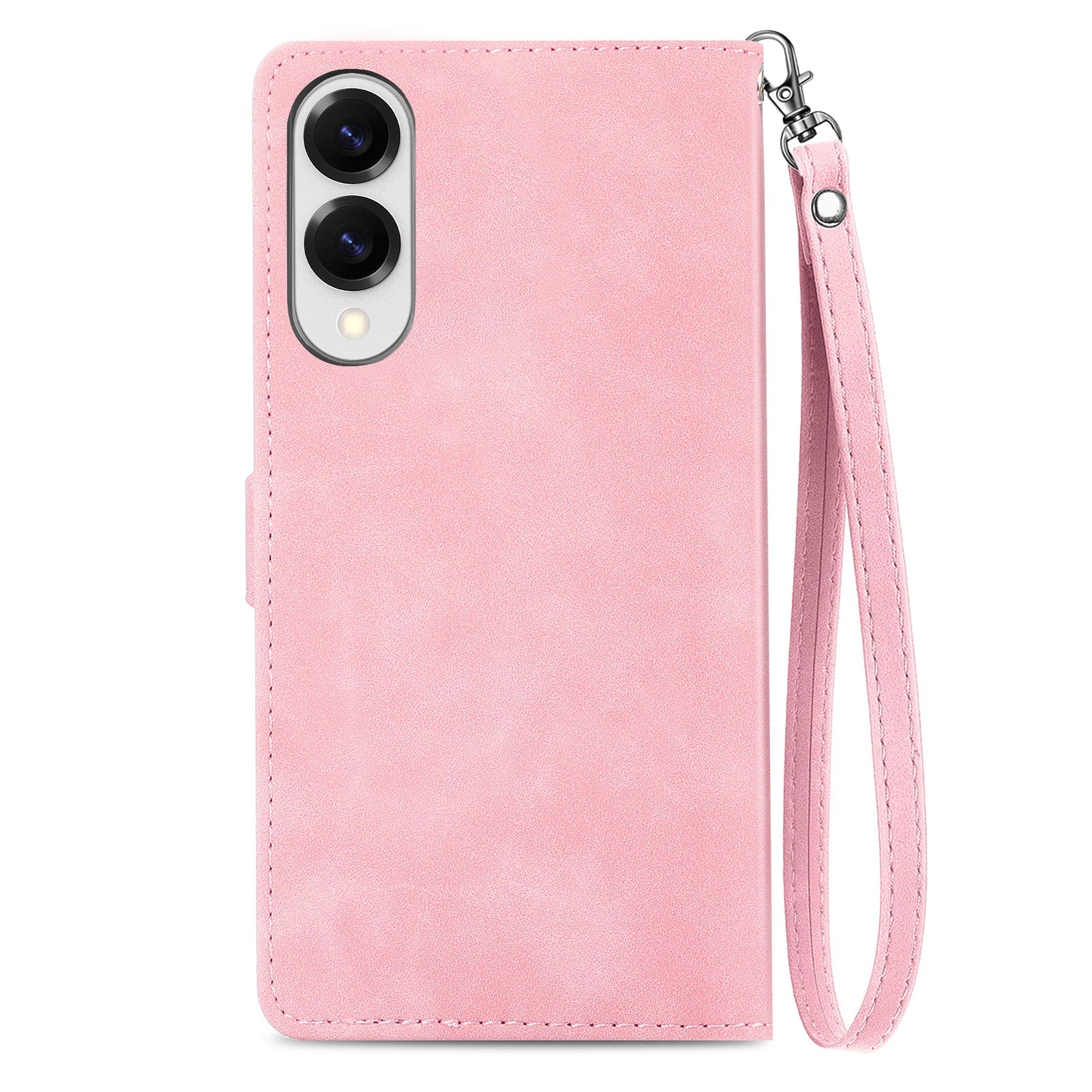 For Samsung Galaxy S25 Edge Zipper Wallet Case with Strap Flower Imprint PU Leather Phone Cover - Pink