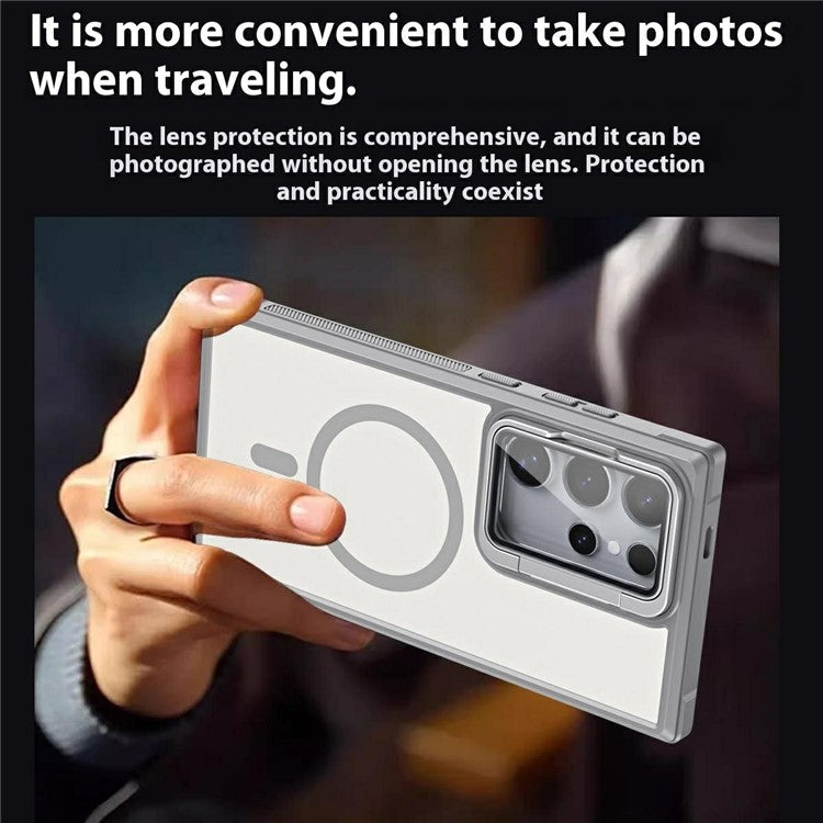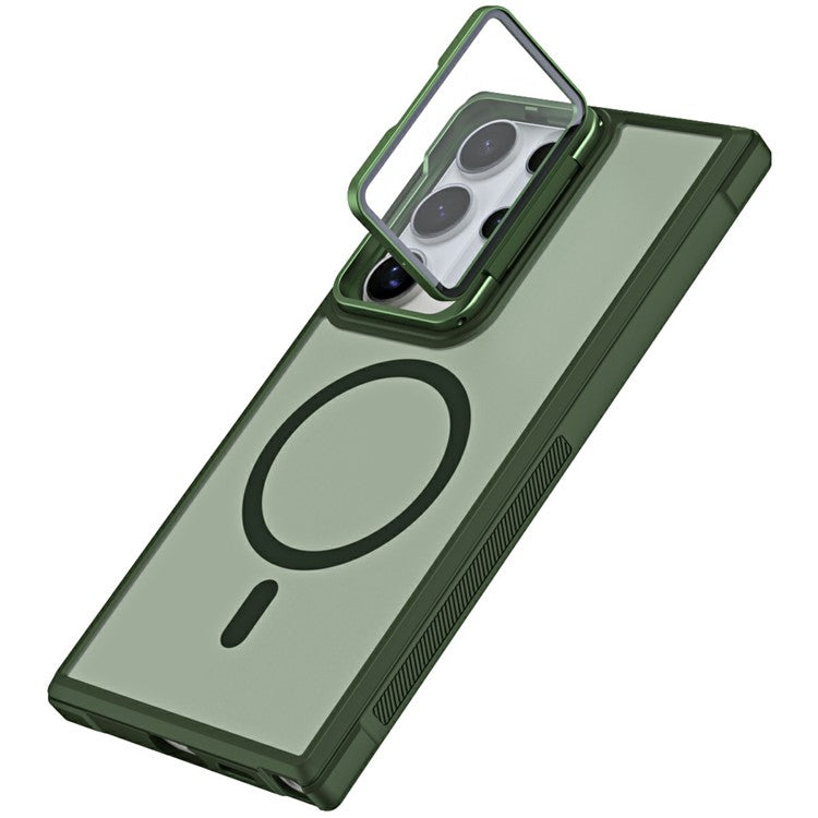 For Samsung Galaxy S25 Ultra Case Compatible with MagSafe Lens Cover Kickstand Matte Back Cover - Green
