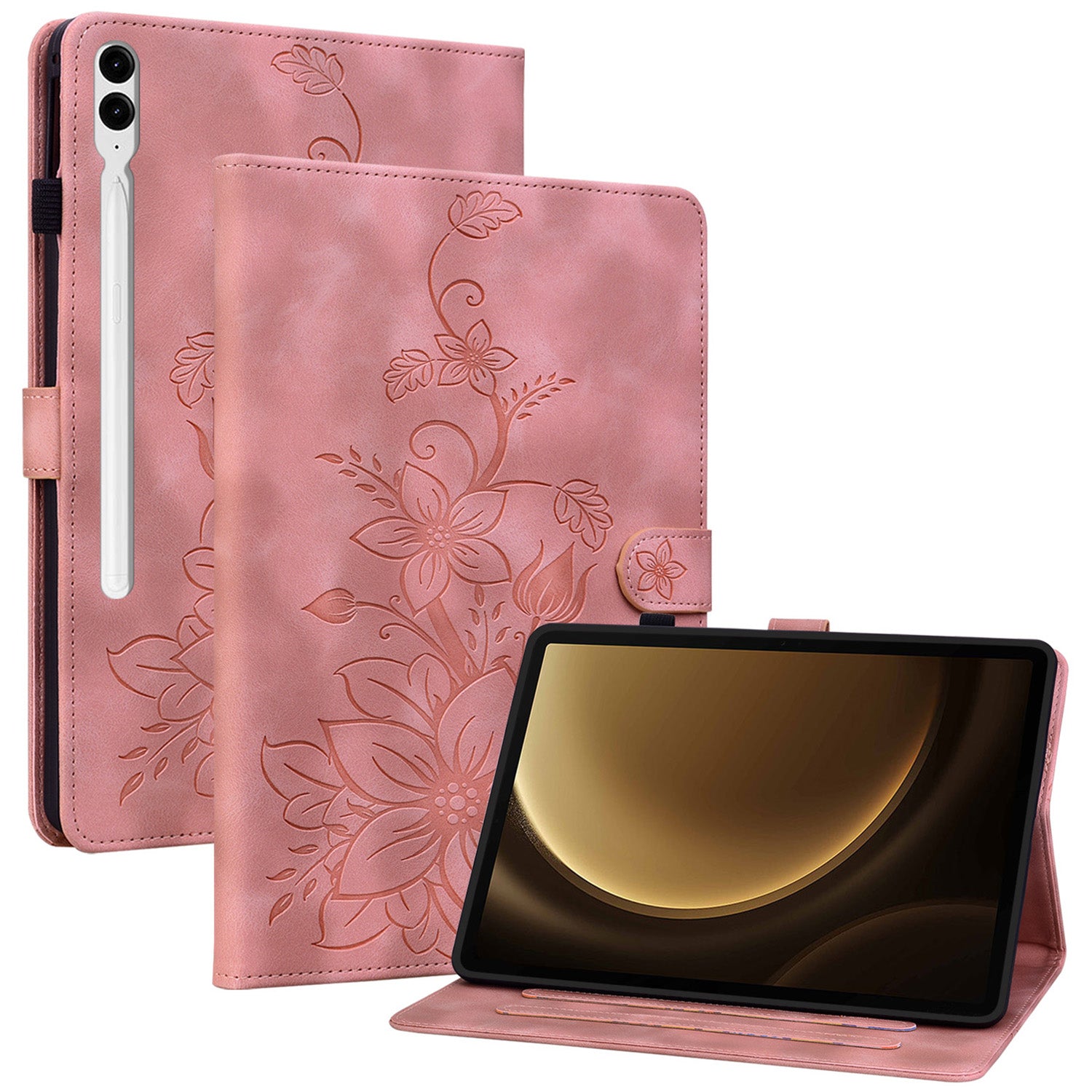 For Samsung Galaxy Tab S10+ / S9+ / S9 FE+ Card Slots Case Lily Flower Imprint PU Leather Tablet Cover - Pink