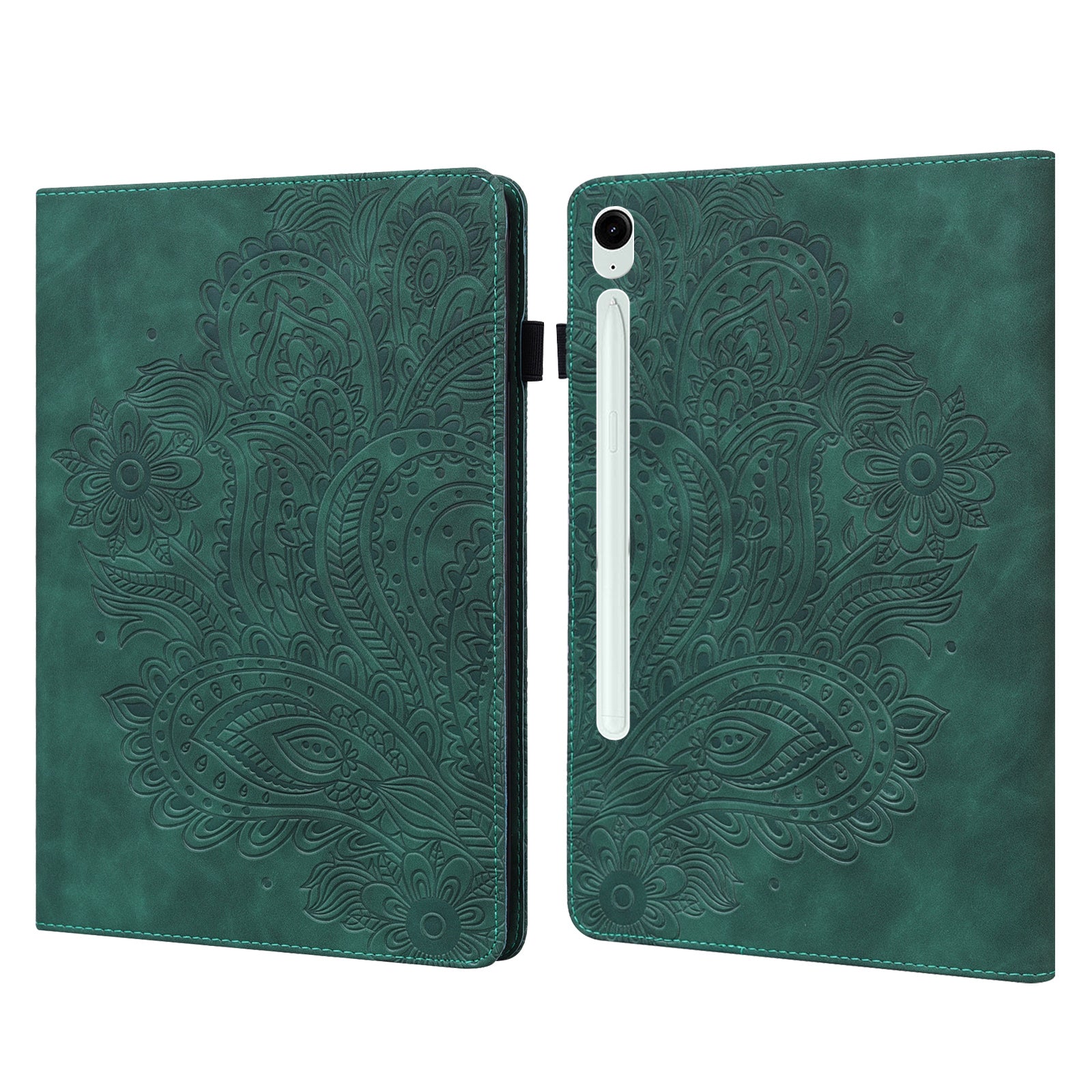 For Samsung Galaxy Tab S10 / S9 / S9 FE PU Leather Card Holder Tablet Case Flower Imprinting Support Stand Cover - Green