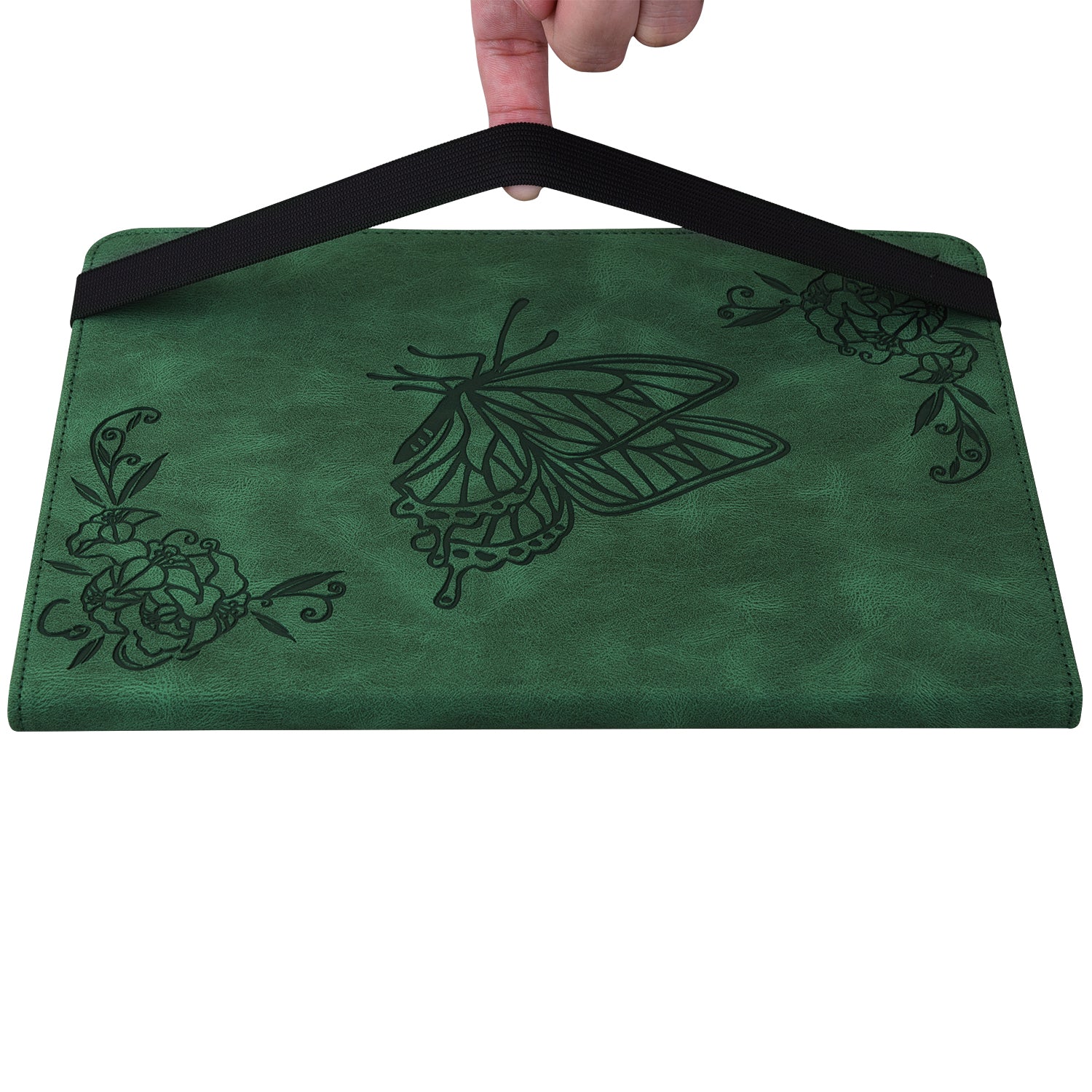 For Samsung Galaxy Tab S10 / S9 / S9 FE PU Leather Stand Cover Imprinted Butterfly Flower Card Holder Tablet Case - Green