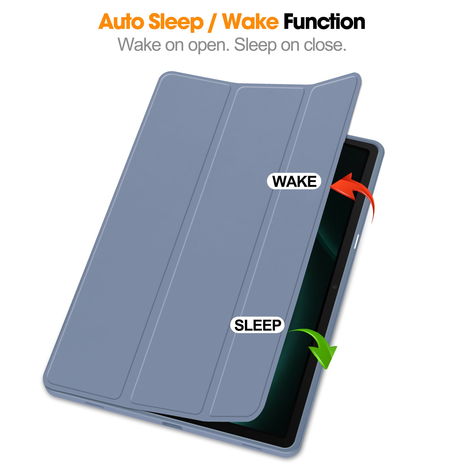 For Samsung Galaxy Tab S9 FE+ Case Tri-fold Stand Pen Slot Tablet Leather Cover - Purple