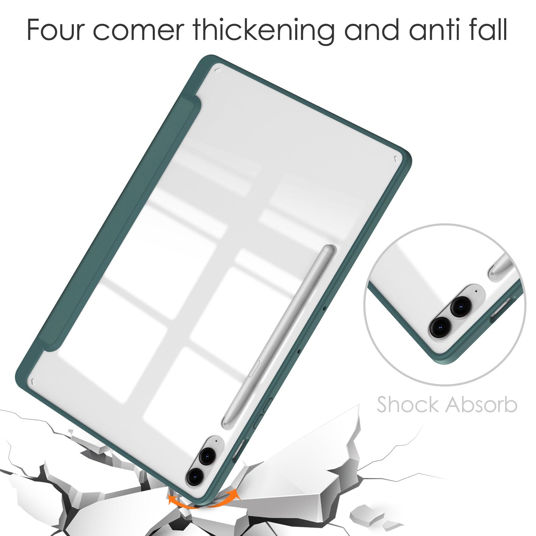 For Samsung Galaxy Tab S9 FE+ Clear Case Pen Slot Tablet Tri-fold Stand Cover - Green