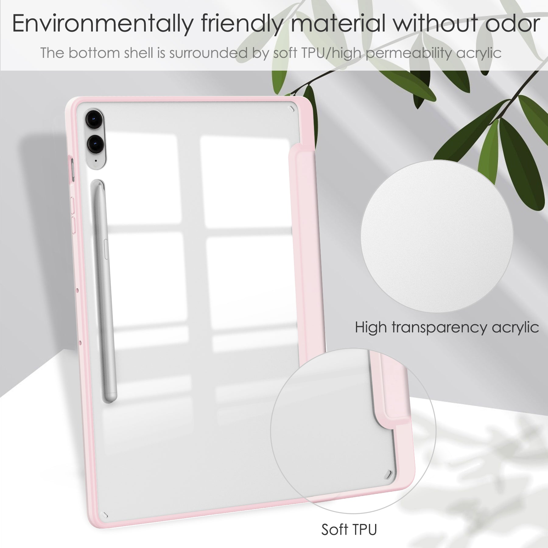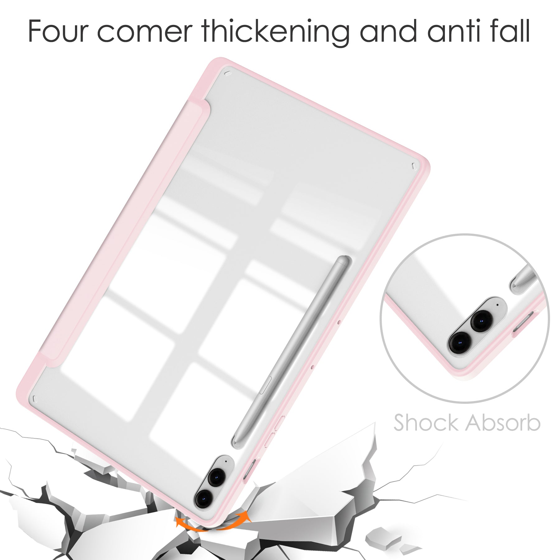 For Samsung Galaxy Tab S9 FE+ Clear Case Pen Slot Tablet Tri-fold Stand Cover - Pink
