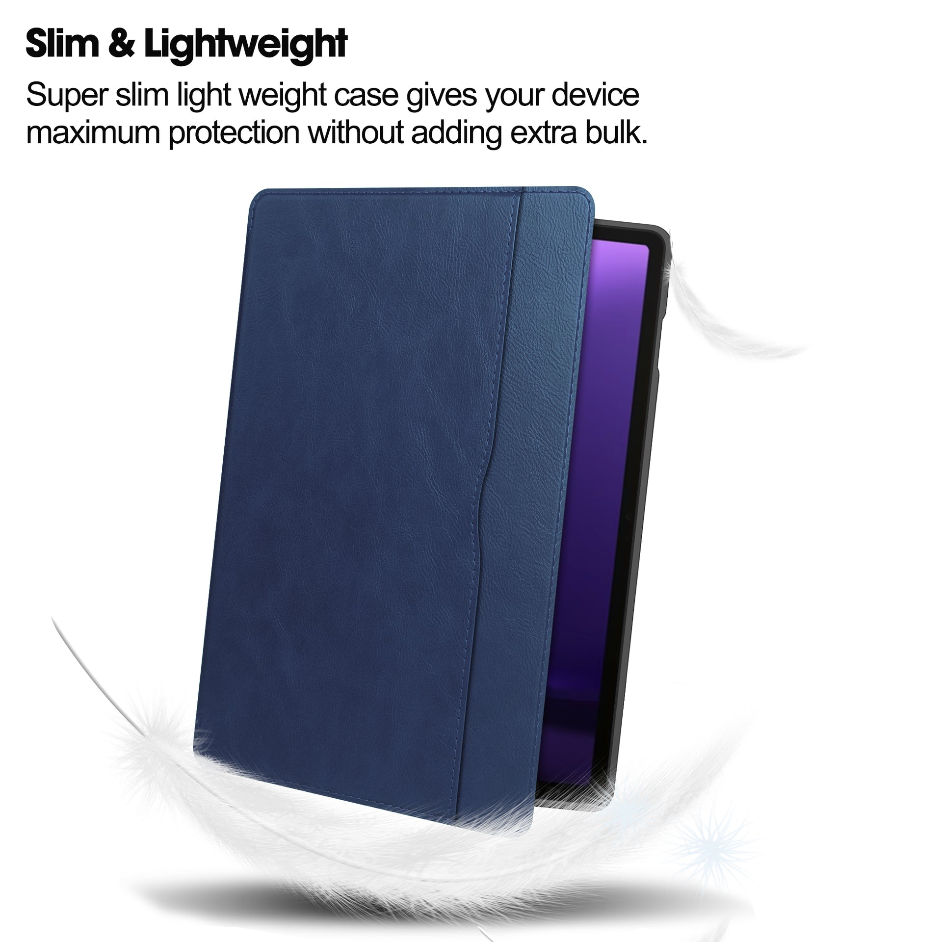 For Samsung Galaxy Tab S9 FE Leather Business Folio Cover Smart Tablet Case with Card Holder - Blue