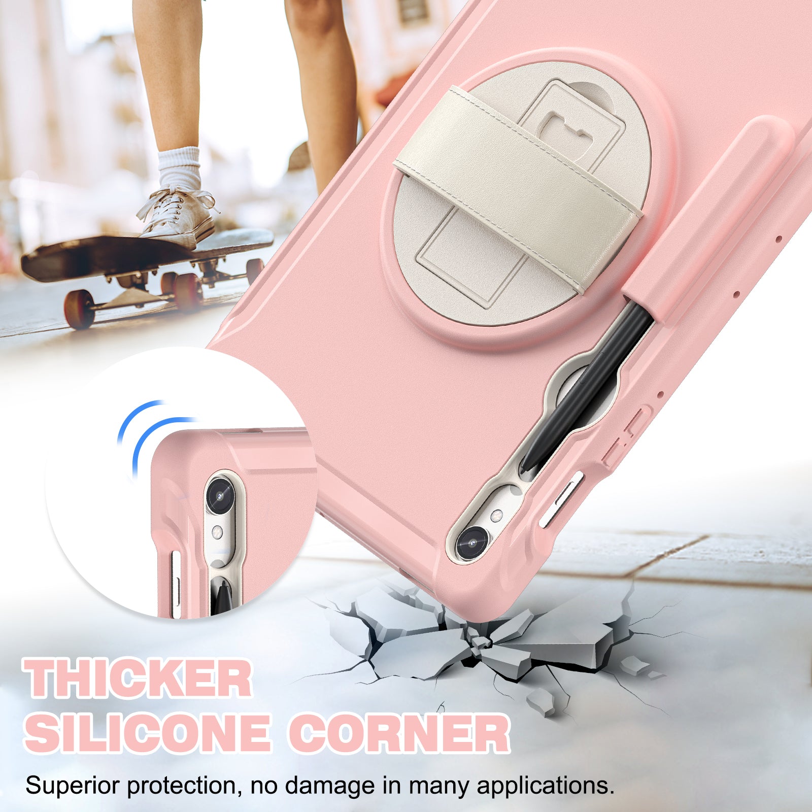 For Samsung Galaxy Tab S9 FE / S7 T870 / S8 X700 / S9 X710 Case PC+TPU Kickstand Tablet Cover with Pen Slot - Cherry Blossoms Pink