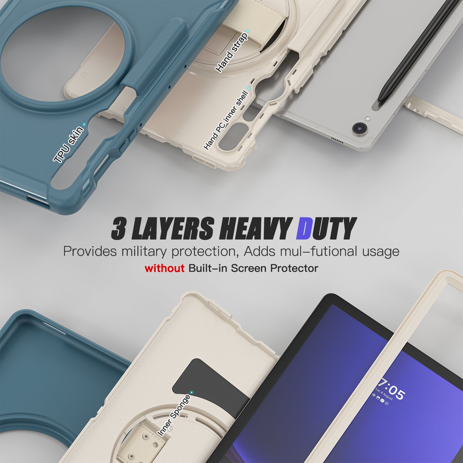 For Samsung Galaxy Tab S9 FE / S7 T870 / S8 X700 / S9 X710 Case PC+TPU Kickstand Tablet Cover with Pen Slot - Cornflower Blue