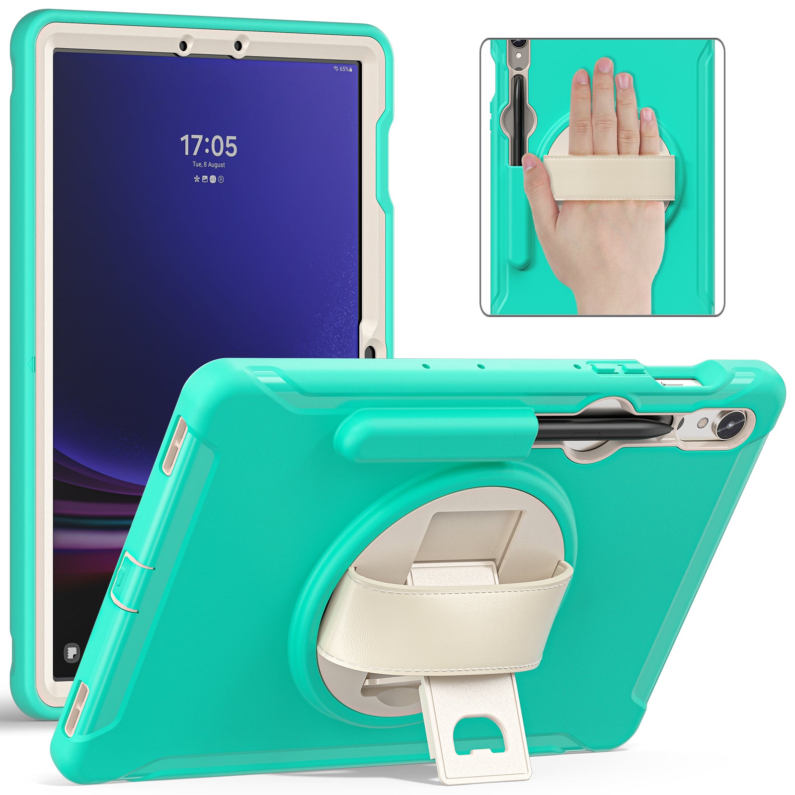 For Samsung Galaxy Tab S9 FE / S7 T870 / S8 X700 / S9 X710 Case PC+TPU Kickstand Tablet Cover with Pen Slot - Mint Green