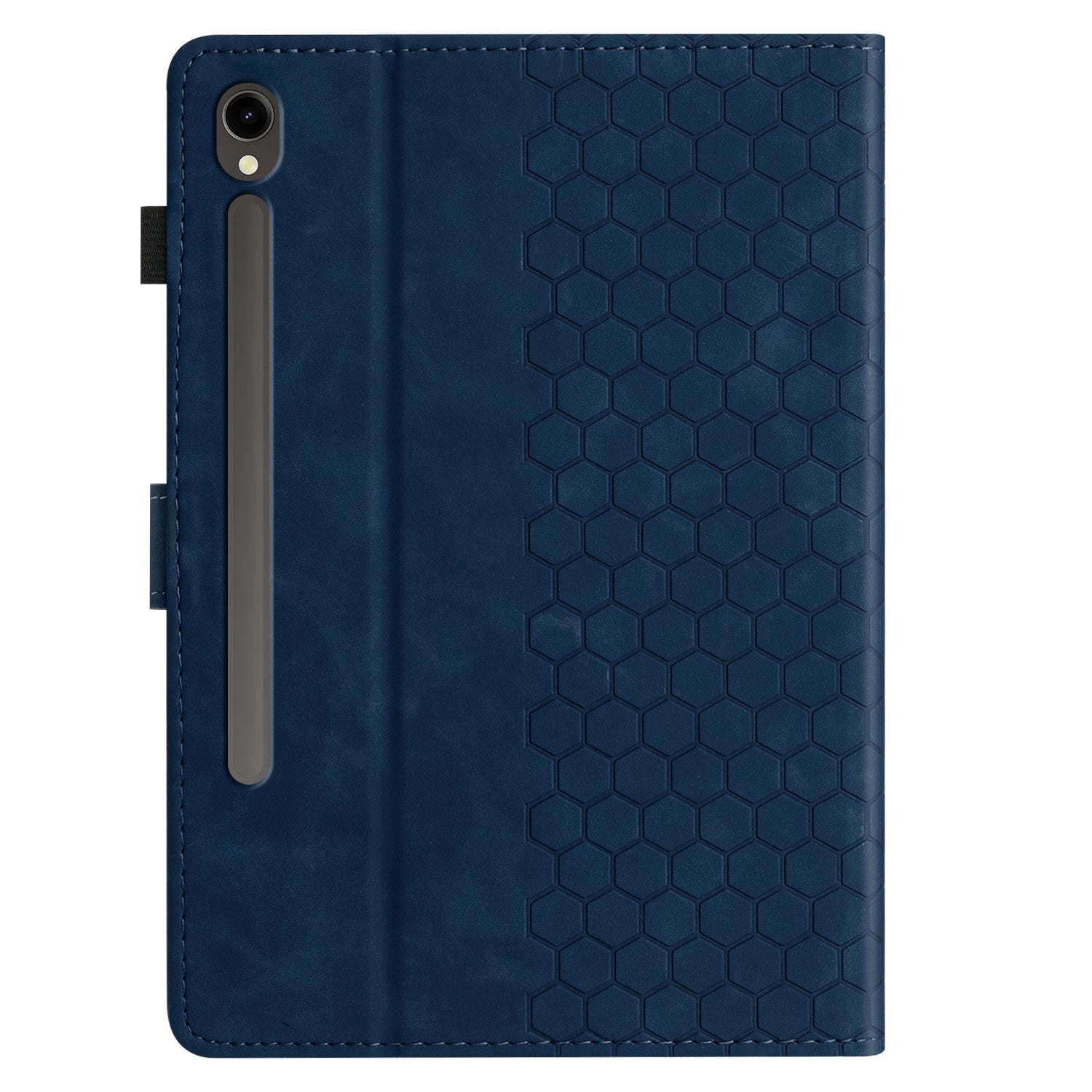 For Samsung Galaxy Tab S9 FE / S9 Case Honeycomb Printed Leather Tablet Cover with Card Slot - Blue