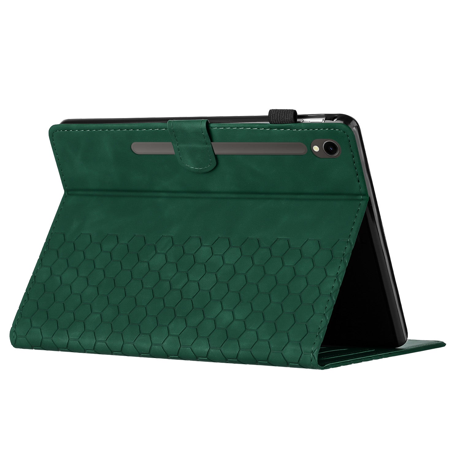 For Samsung Galaxy Tab S9 FE / S9 Case Honeycomb Printed Leather Tablet Cover with Card Slot - Green