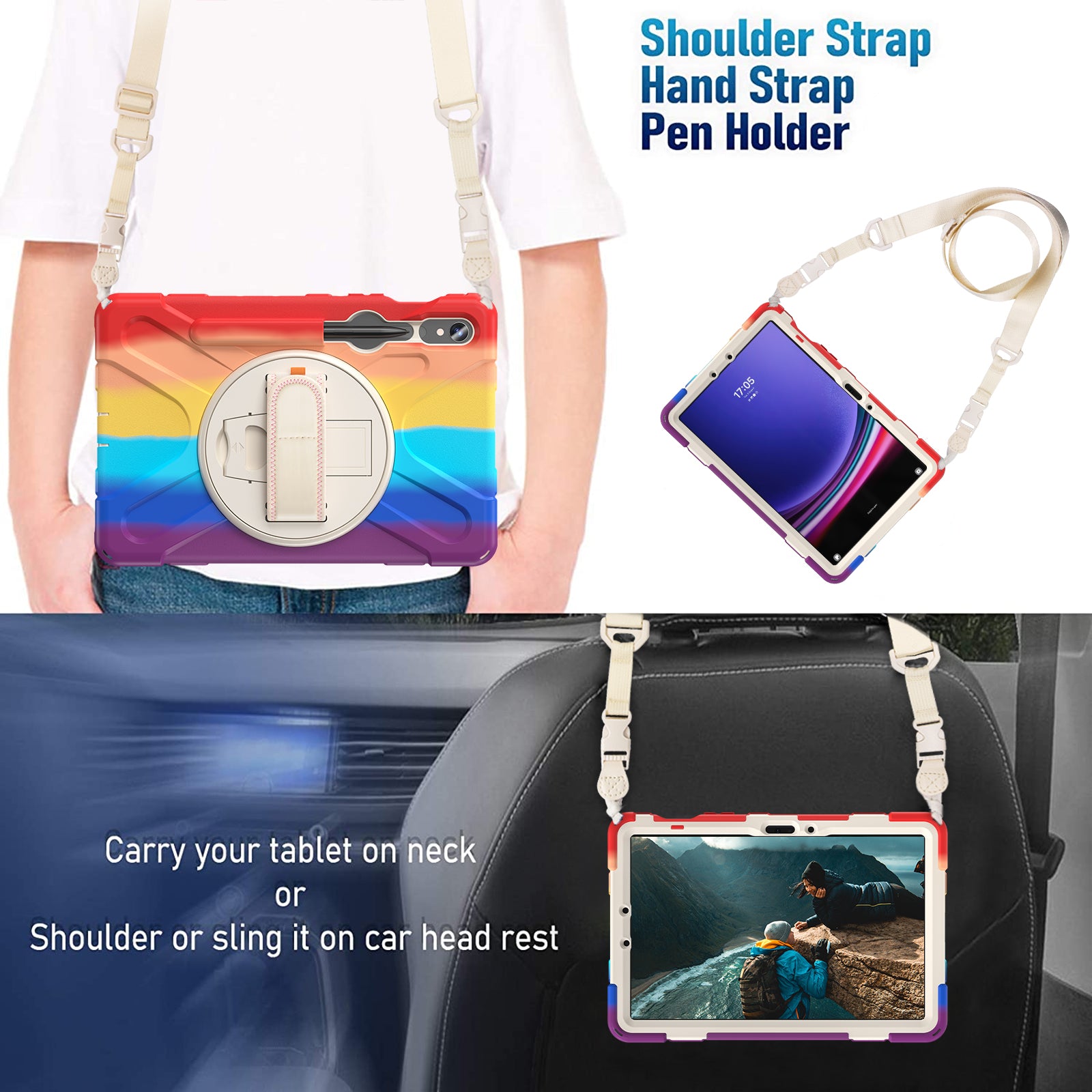 For Samsung Galaxy Tab S9 FE / S9 X710  /  S8 X700  /  S7 T870 PC+Silicone Tablet Case Kickstand Cover with Hand Strap  /  Shoulder Strap - Colorful Red