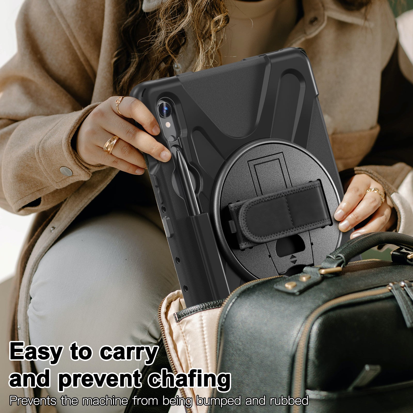 For Samsung Galaxy Tab S9 FE / S9 X710 / S8 X700 / S7 T870 Wrist Strap Tablet Case PC+Silicone Kickstand Protective Cover - Black