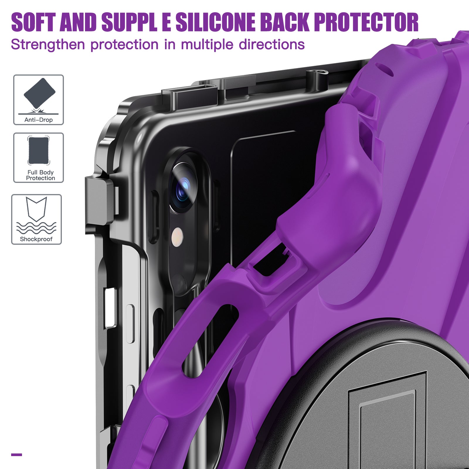 For Samsung Galaxy Tab S9 FE / S9 X710 / S8 X700 / S7 T870 Wrist Strap Tablet Case PC+Silicone Kickstand Protective Cover - Purple