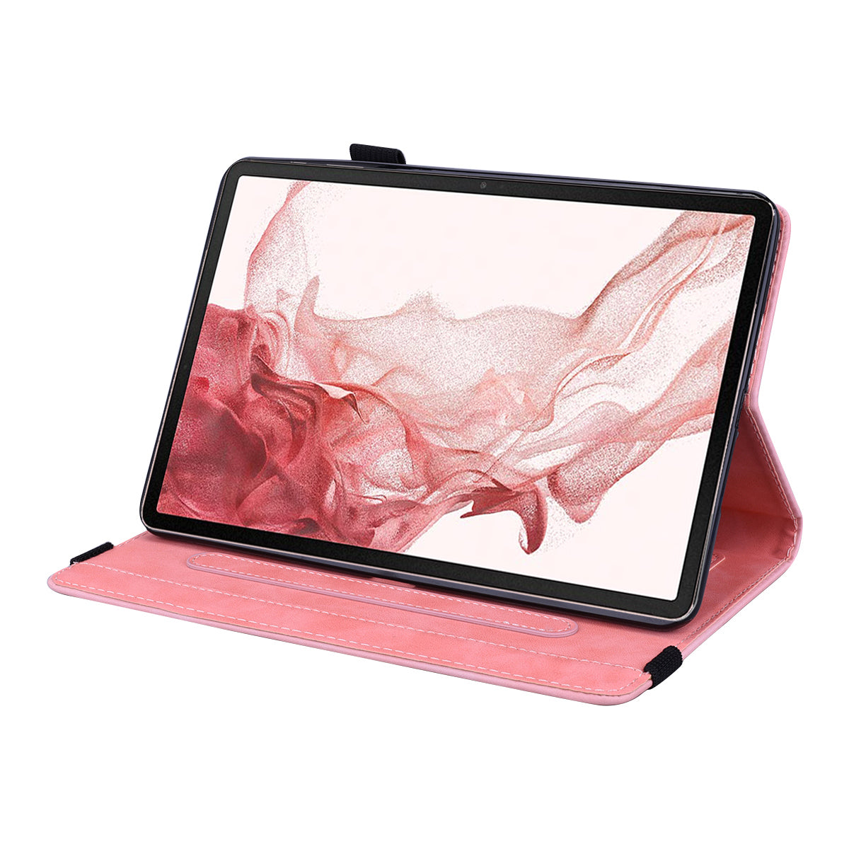 For Samsung Galaxy Tab S9 FE+ Tablet Case Card Slots Leather Cover Flower Pattern - Pink