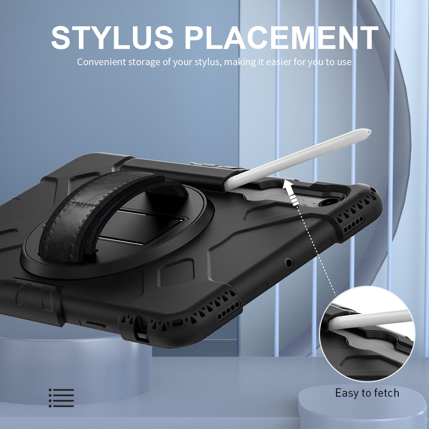 Built-in pen holder loop for storaging your stylus (not included)