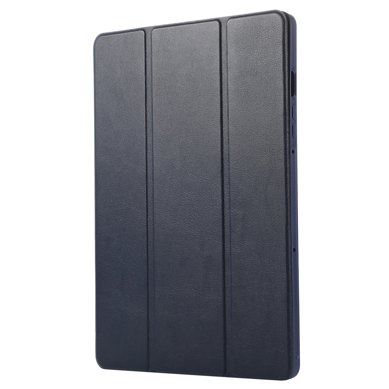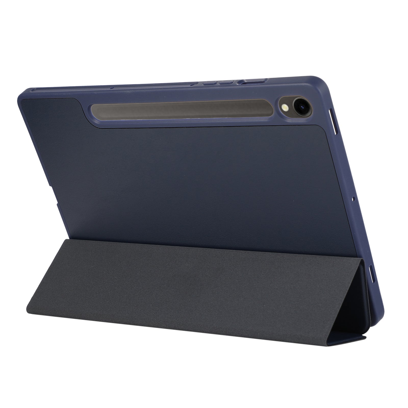 For Samsung Galaxy Tab S9 / Tab S9 FE Tablet Case Tri-Fold Stand Solid Color Shockproof PU Cover with Pencil Slot - Blue
