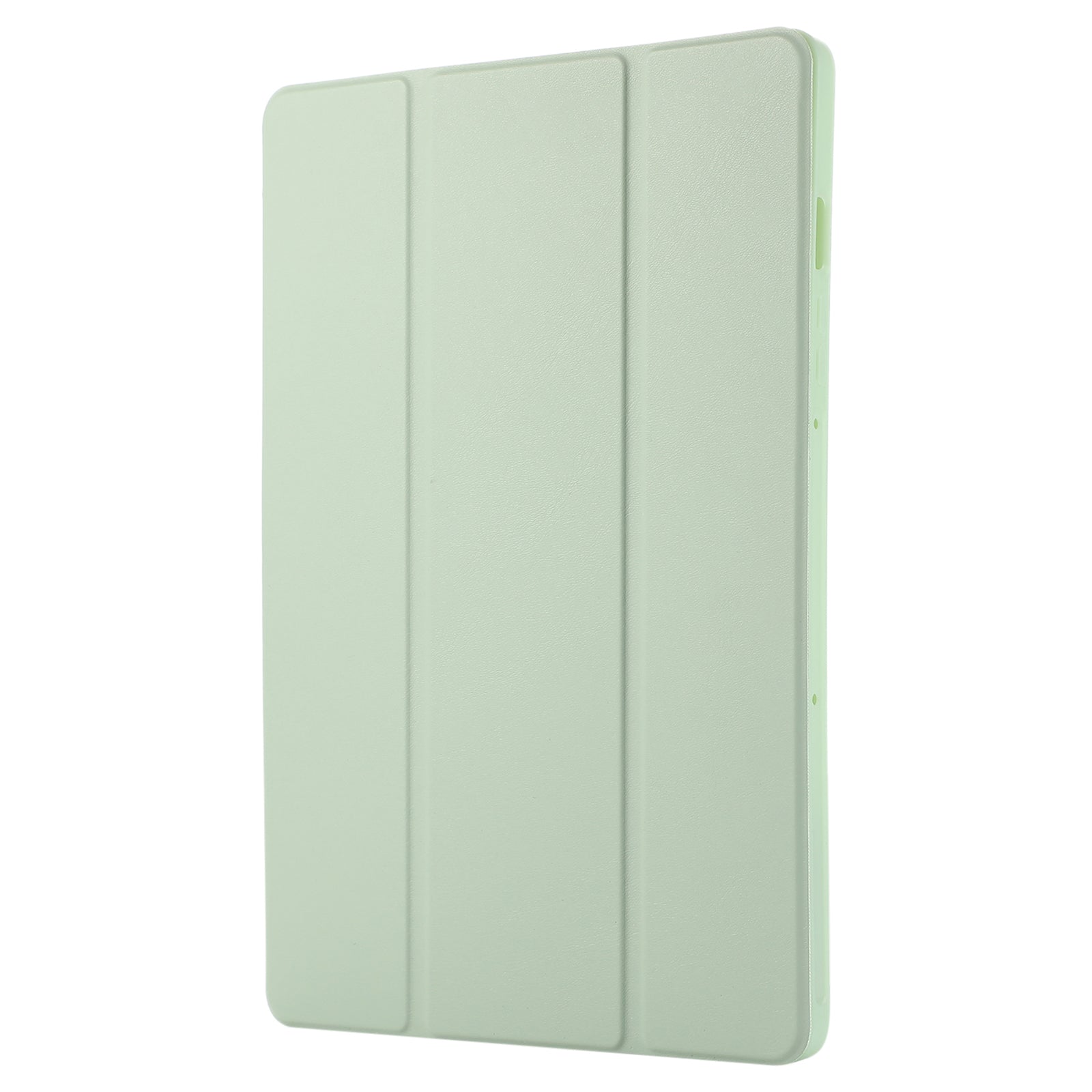 For Samsung Galaxy Tab S9 / Tab S9 FE Tablet Case Tri-Fold Stand Solid Color Shockproof PU Cover with Pencil Slot - Green