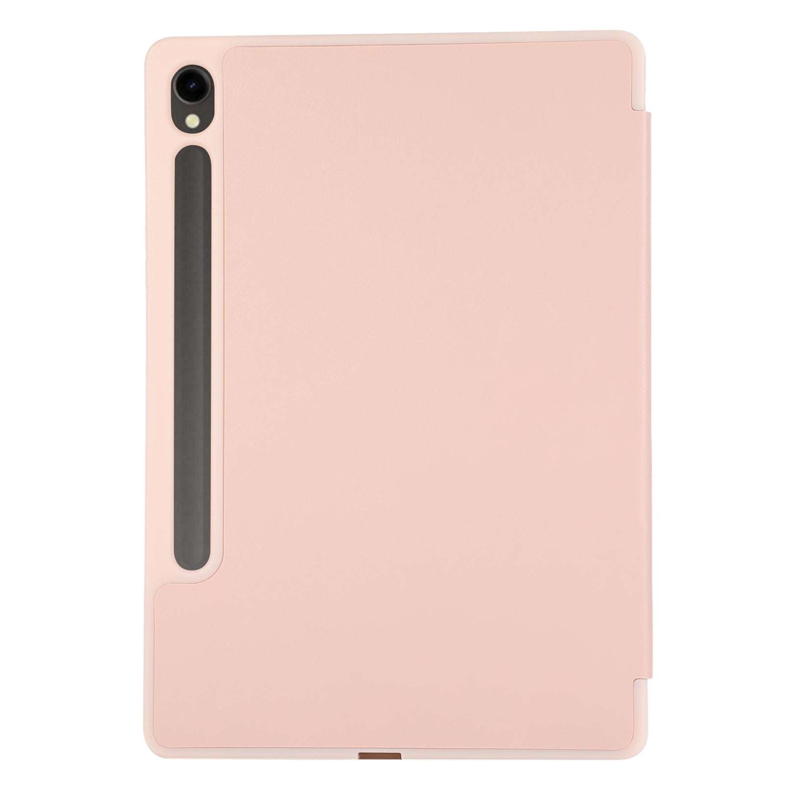 For Samsung Galaxy Tab S9 / Tab S9 FE Tablet Case Tri-Fold Stand Solid Color Shockproof PU Cover with Pencil Slot - Pink