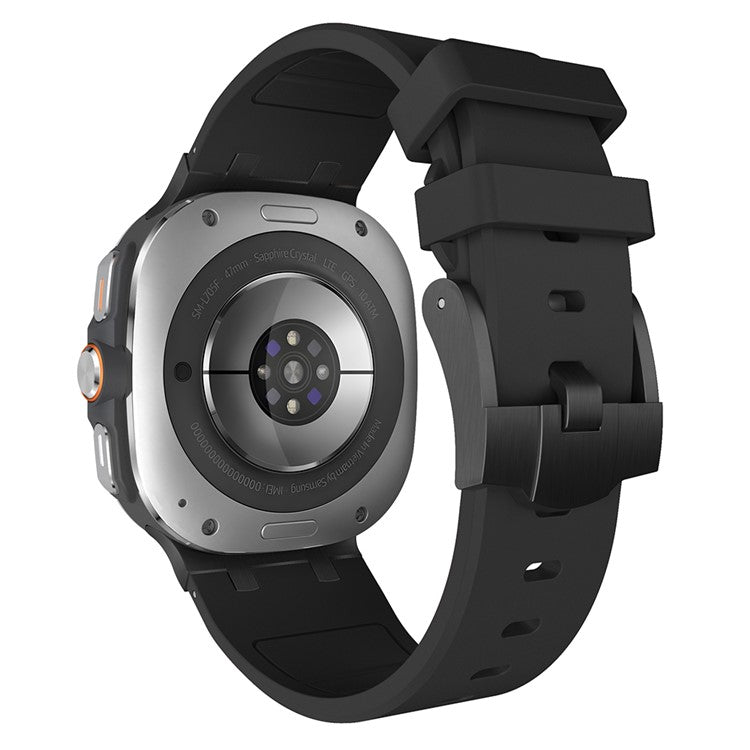 For Samsung Galaxy Watch Ultra 47mm Silicone Watch Band Adjustable Strap with Black Buckle - Black + Black