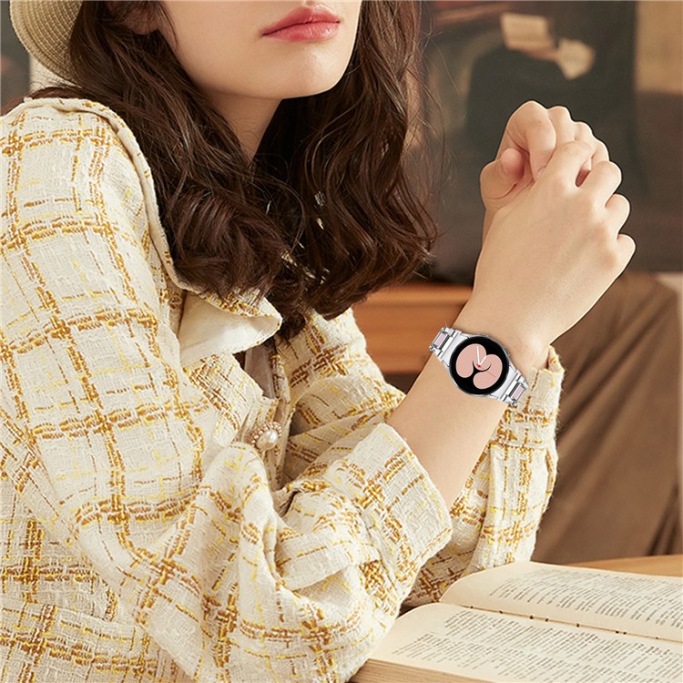 For Samsung Galaxy Watch4 Active 40mm/44mm/Watch4 Classic 42mm/46mm Shiny Rhinestone Watch Strap Stainless Steel Resin Wrist Band Replacement - Silver/Pink