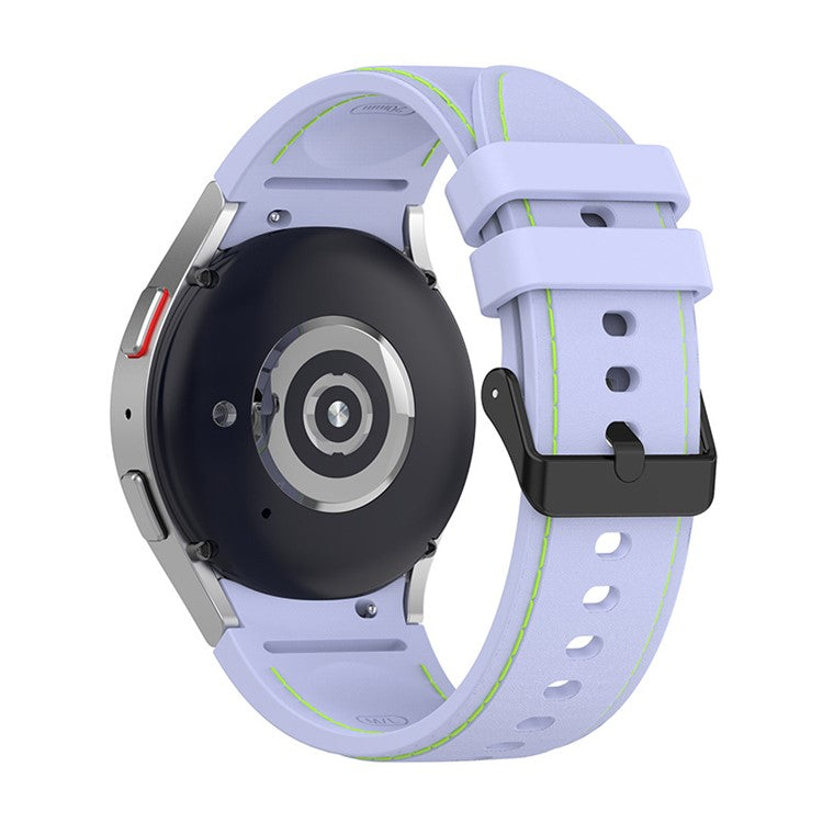 For Samsung Galaxy Watch6 40mm 44mm / Watch6 Classic 43mm 47mm / Watch 5 40mm 44mm / 5 Pro 45mm / Watch4 40mm 44mm Silicone Watch Band Stitching Line Black Buckle Wrist Strap Replacement, Size S - Purple / Green