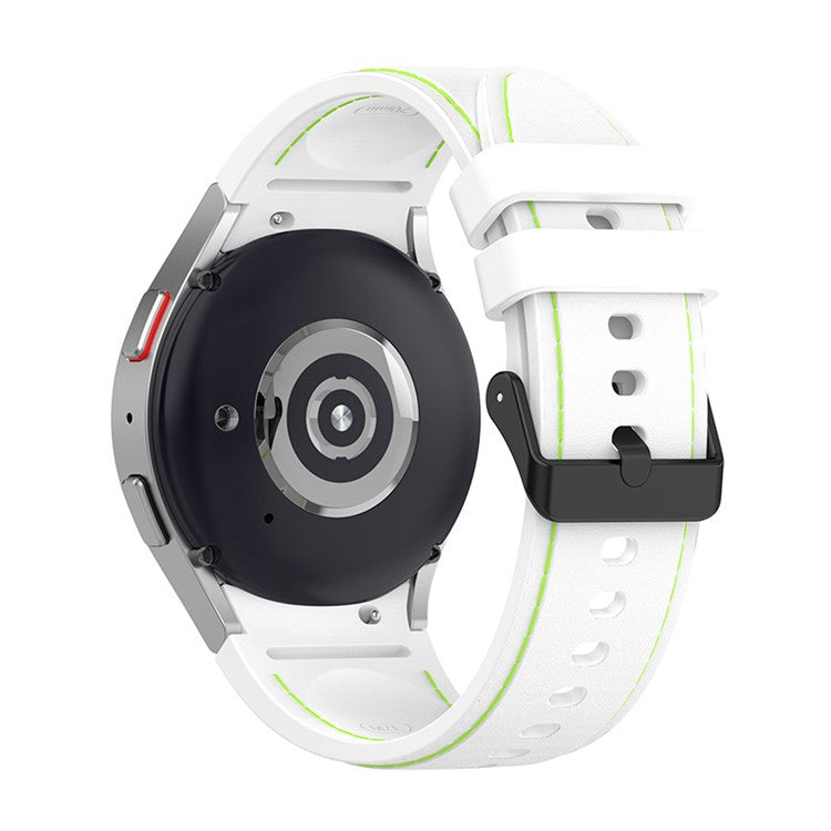 For Samsung Galaxy Watch6 40mm 44mm / Watch6 Classic 43mm 47mm / Watch 5 40mm 44mm / 5 Pro 45mm / Watch4 40mm 44mm Silicone Watch Band Stitching Line Black Buckle Wrist Strap Replacement, Size S - White / Green