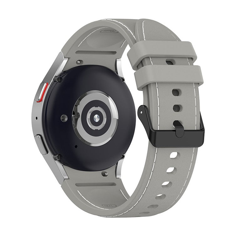 For Samsung Galaxy Watch6 40mm 44mm / Watch6 Classic 43mm 47mm / Watch 5 40mm 44mm / 5 Pro 45mm / Watch4 40mm 44mm Watch Band Silicone Stitching Line Replacement Wrist Strap with Black Buckle, Size L - Grey / White