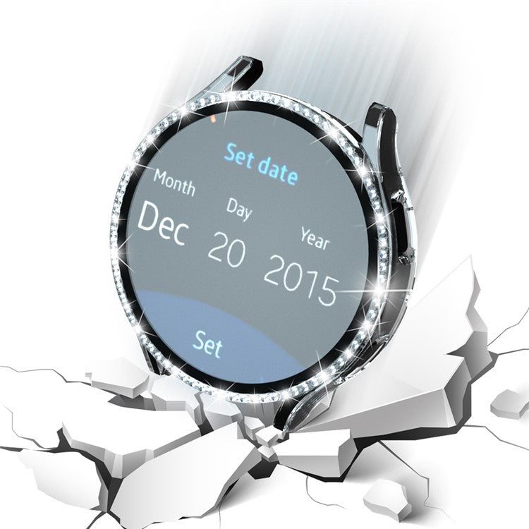For Samsung Galaxy Watch7 44mm PC Watch Case Rhinestone Decor Cover with Tempered Glass Film - Transparent