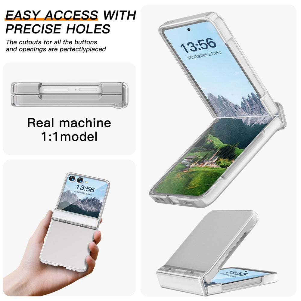 - ?Exquisite Design? The PC folding phone case with a tempered glass front screen protector, offering both aesthetic appeal and robust protection against drops and shocks