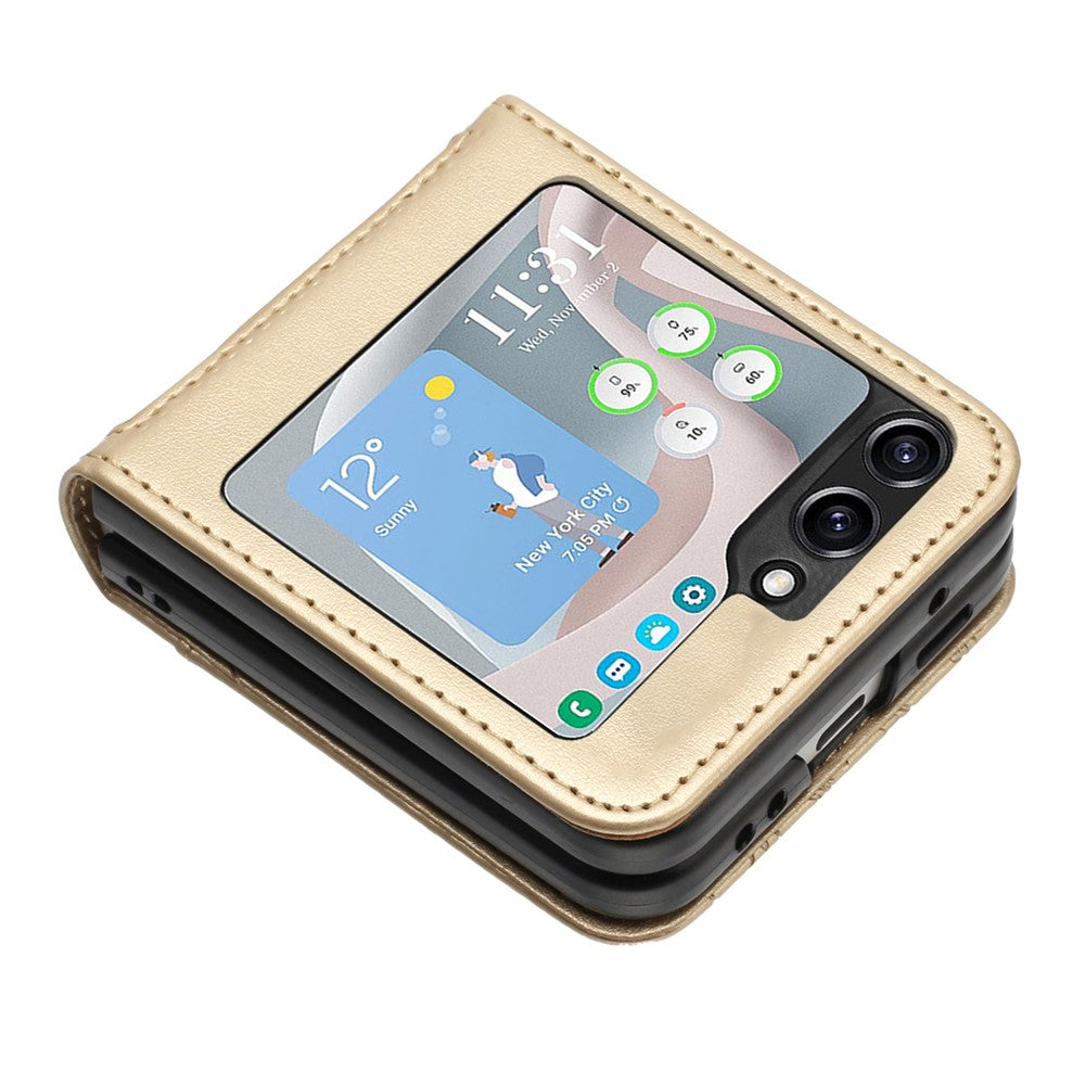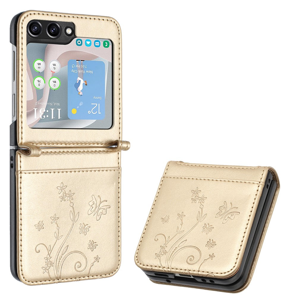 For Samsung Galaxy Z Flip7 FE 5G / Z Flip6 5G Case Butterfly Flower Imprinted Leather Phone Cover - Gold