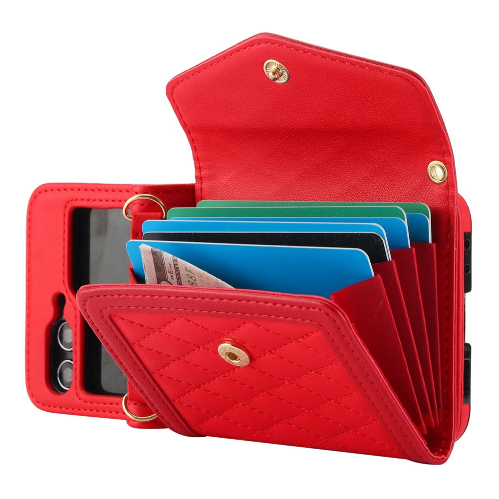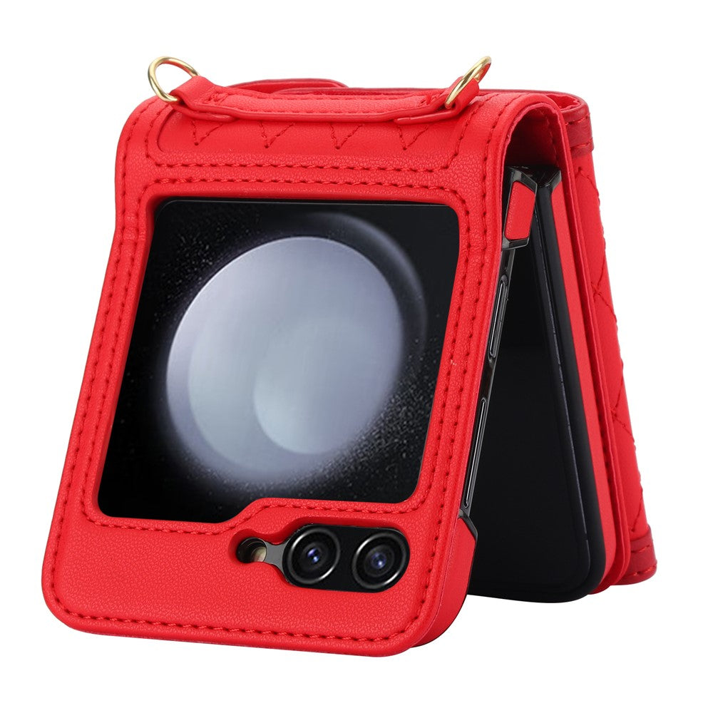 For Samsung Galaxy Z Flip7 FE 5G / Z Flip6 5G Case Card Holders PU Leather+PC Phone Cover with Detachable Shoulder Strap - Red