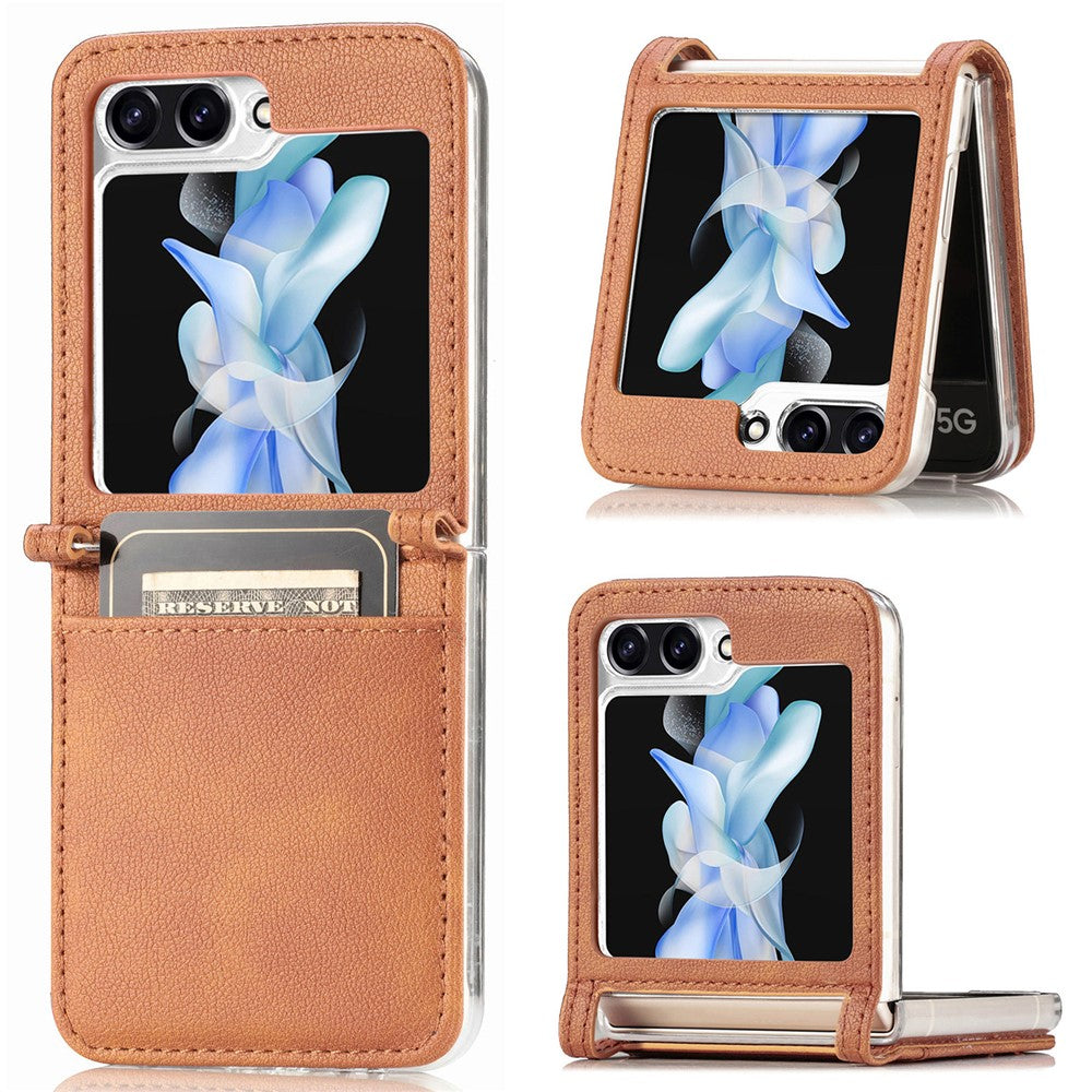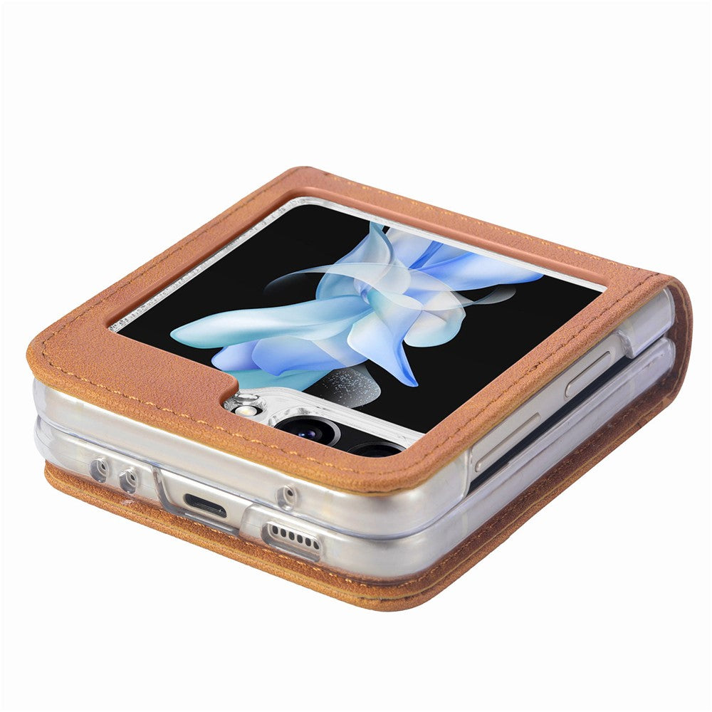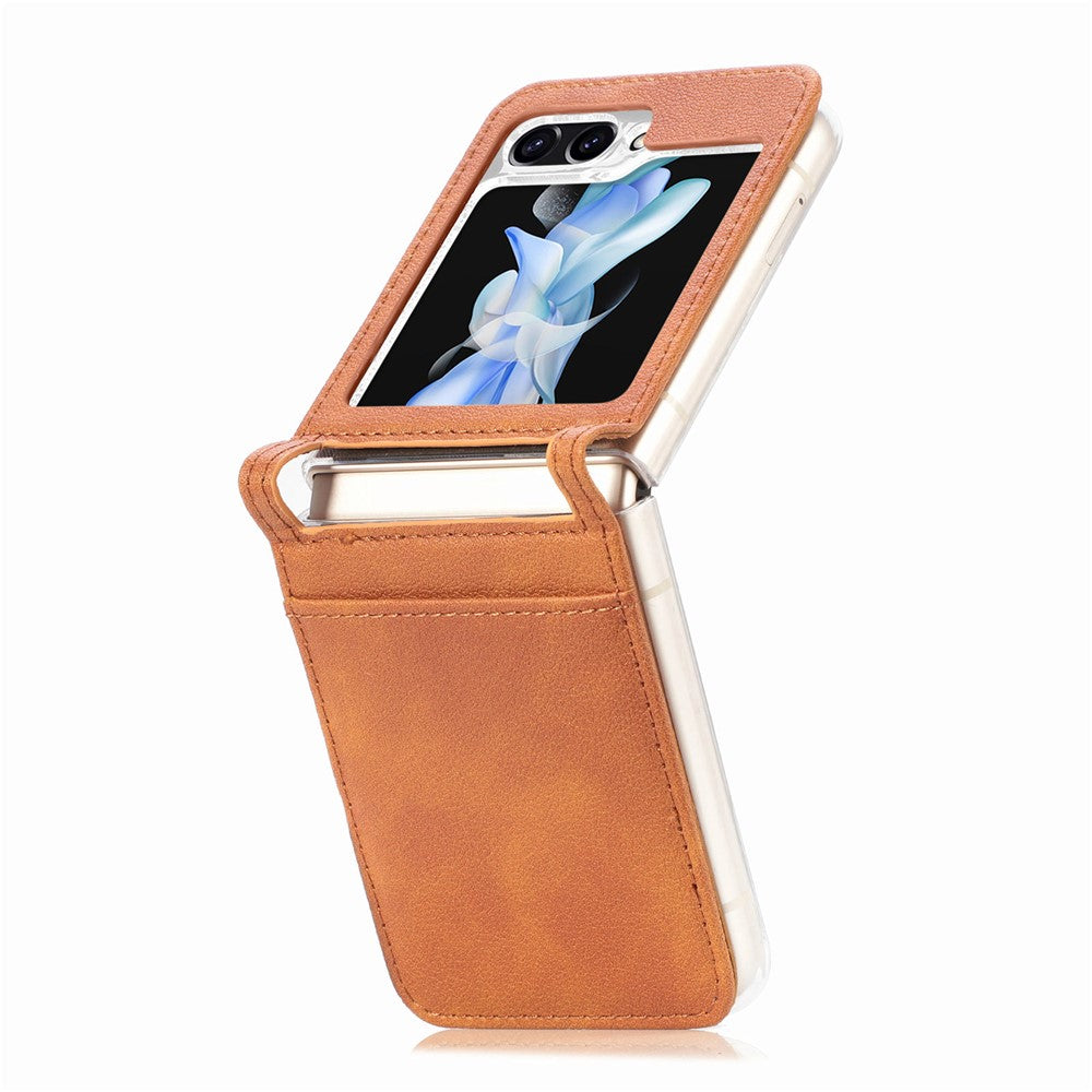 For Samsung Galaxy Z Flip7 FE 5G / Z Flip6 5G Case Card Slot Leather+PC Phone Cover - Brown