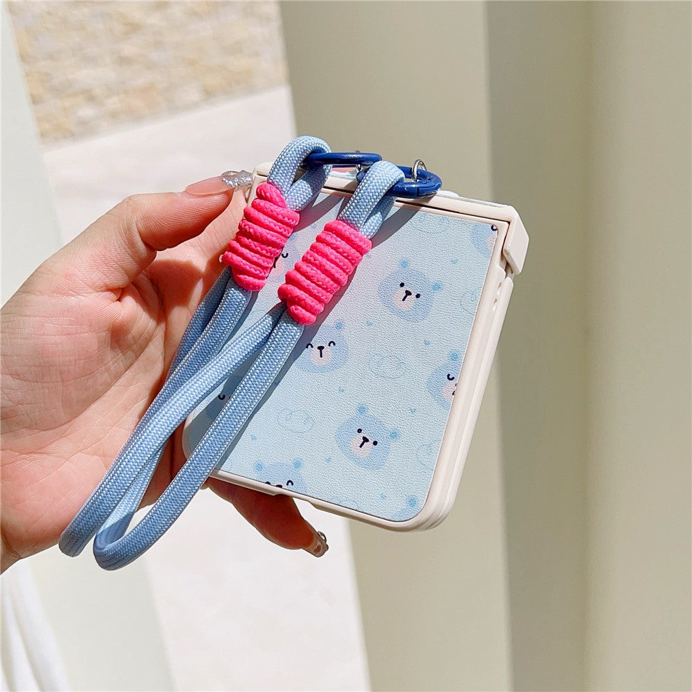 For Samsung Galaxy Z Flip7 FE 5G / Z Flip6 5G Case Cute Bear Pattern PU + PC Protective Phone Cover with Strap