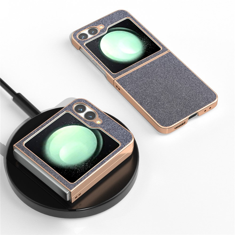 For Samsung Galaxy Z Flip7 FE 5G / Z Flip6 5G Case Electroplating Phone Cover Glitter Surface Design PU+TPU Protective Case - Black